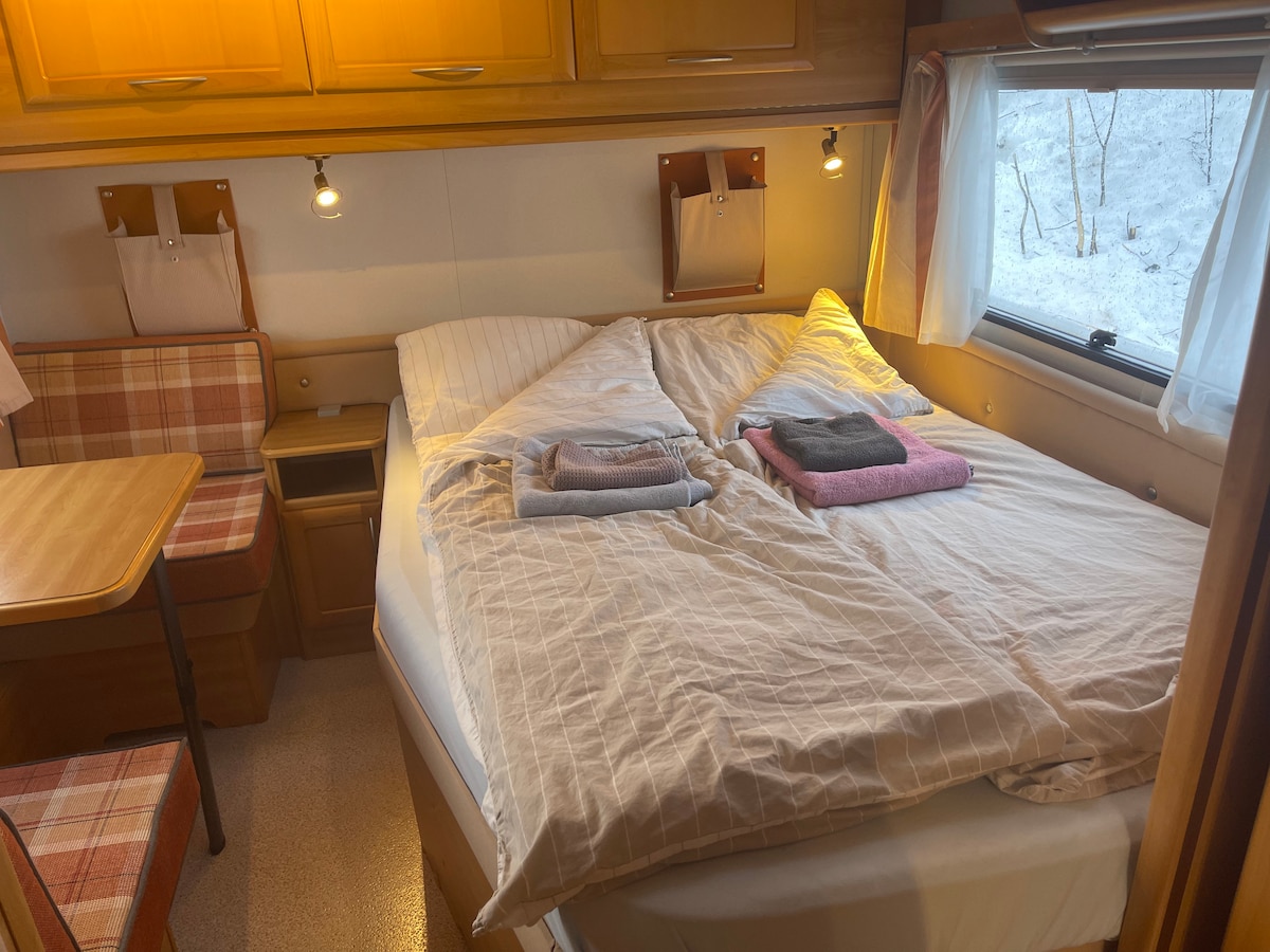 Denne flotte campingvognen står parkert ca 37 km utenfor Tromsø. Den er perfekt hvis du trenger et rolig sted å sove når du er på jakt etter nordlys eller for å utforske området utenfor Tromsø. Campingvognen kan ikke flyttes. Hvis Freddy er ledig og været er fint, er det mulig å bruke badestampen hans som er fylt med rent friskt arktisk sjøvann. Spør om dette før ankomst eller ved bestilling dersom dette er av interesse. Badestamp og grillhytte koster ekstra.