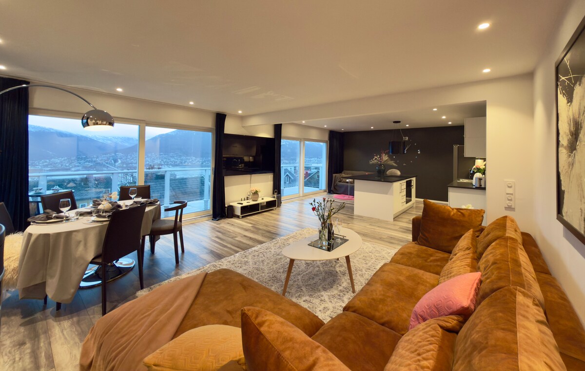 Penthouse lantai atas yang luar biasa terletak di lantai atas dengan jacuzzi pribadi dan sauna dengan pemandangan panorama Tromsdalstinden, katedral dan jembatan kota. Nikmati Northern Lights dari balkon atau jacuzzi. Pemandangan spektakuler perayaan tahun baru dari properti ini. 5 menit berjalan kaki ke semua aktivitas kota dan kehidupan malam, halte bus pusat 1 menit berjalan kaki. Kedua kamar tidur memiliki tempat tidur selebar 180 cm, lemari pakaian, semua kamar memiliki Chromecast TV. Dapur lengkap, parkir gratis tetap. Dilarang merokok dan membawa hewan peliharaan.
