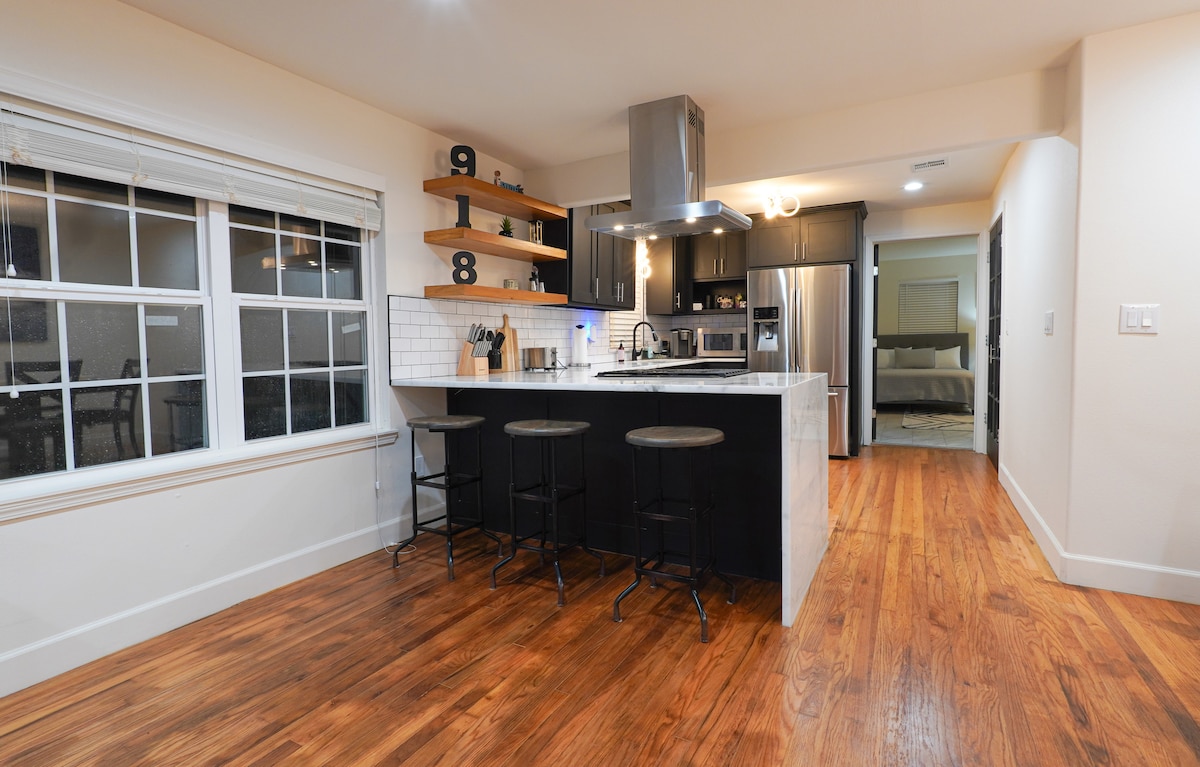 Bangunan bersejarah yang baru direnovasi di pusat kota Tulsa dan dekat dengan segalanya! Berjalanlah di seberang jalan menuju BOK Center, beberapa blok dari Cox Business Center, Cain's Ballroom, Drillers Stadium, Brady Theatre, the Performing Arts Center..beberapa menit dari Gathering Place, Utica Square Shopping, Cherry Street dan River Parks. Hanya 10 menit berkendara ke bandara dan tempat - tempat pameran. Semua perabotan adalah West Elm. Mesin cuci/pengering di dalam unit. Akses gym