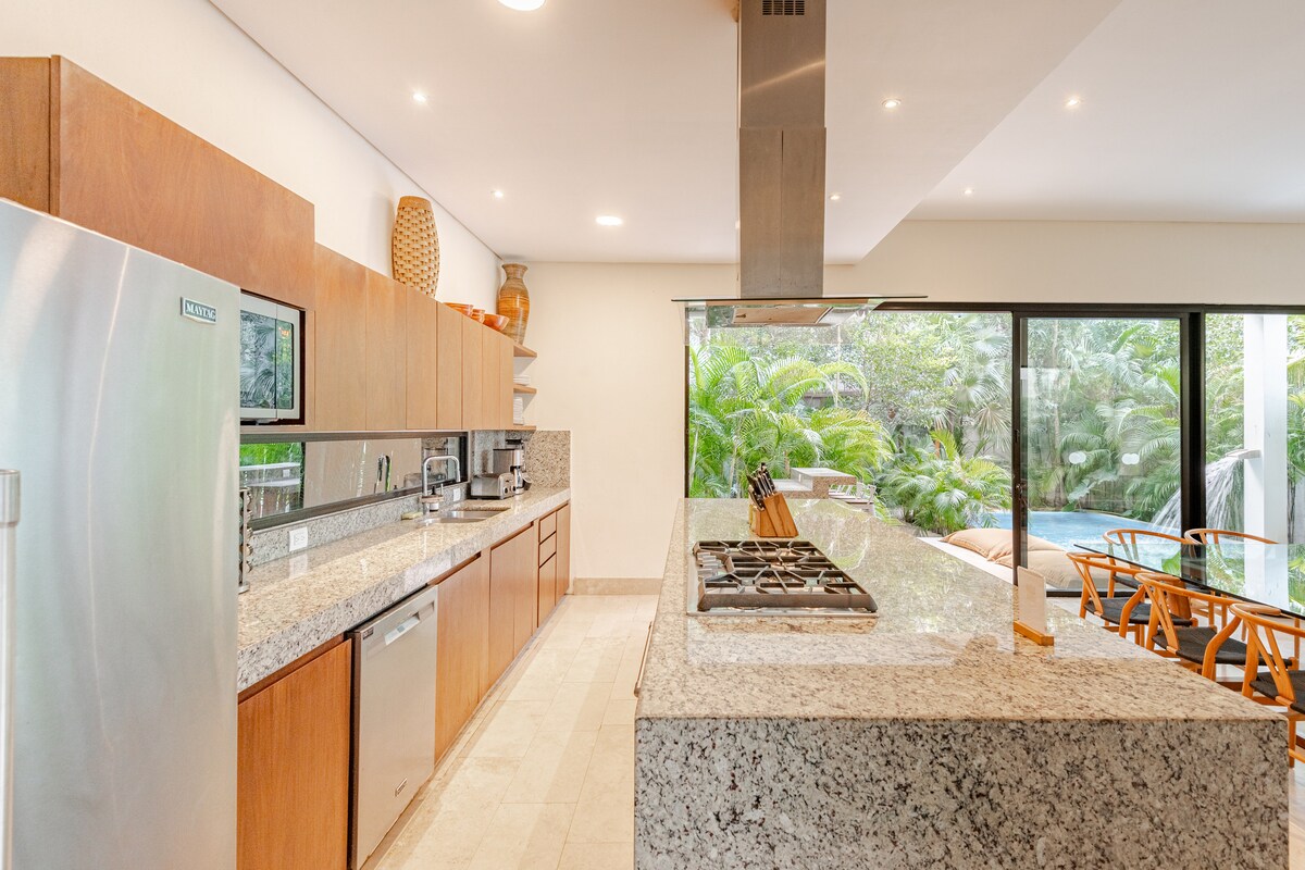 • LOKASI BAGUS! 10 menit ke pantai berpasir Tulum • KEAMANAN 24/7 - Komunitas Berpagar • Layanan Concierge VIP (gratis) • Pembersihan di tengah masa inap untuk semua masa inap (gratis) • 4 Kamar tidur dengan kamar mandi (2 Kings & 2 Queens), masing - masing dengan kamar mandi dalam • Dapat menampung 9 tamu • KOLAM RENANG PRIBADI • ATAP • Kipas AC & Langit - langit di setiap ruangan • Koneksi Internet Cepat Fiber • Dapur lengkap • Ditampilkan di Dezeen, AD, Vogue & Elle Decor.
