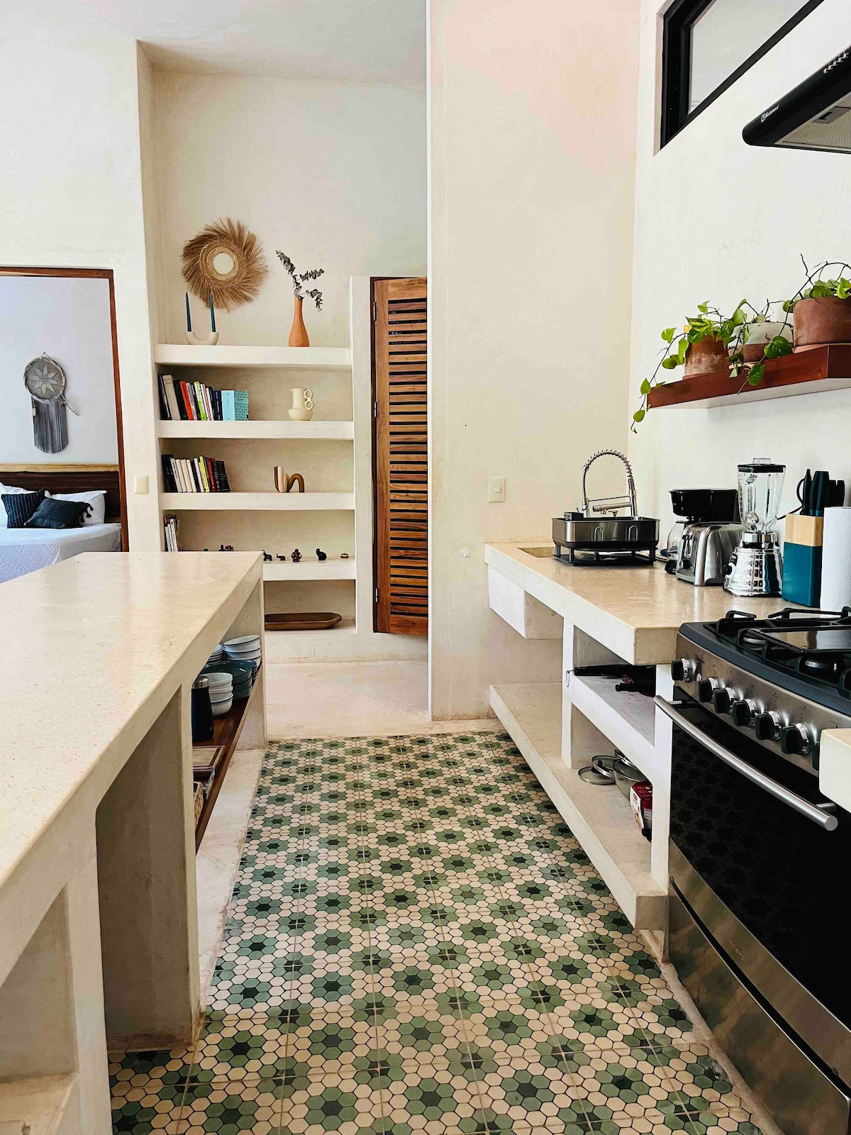 Apartemen 1KT yang menawan & pribadi di Tulum ♡ • Restoran di lokasi dengan Peringkat Tertinggi Aroma Cafe Tulum • Kolam renang bergaya Cenote dengan jet pijat • Check-in mandiri setelah pukul 15.00 • Check out: 11.00 • Internet Fiber 1.000 Mbps • AC lengkap. • 1 tempat tidur king size + 2 tempat tidur sofa single • Smart TV 42" 4K dengan satelit & Netflix • Kamar mandi dalam pribadi - Dapur + area makan dilengkapi penuh • Tempat parkir pribadi gratis • Pemanggang luar ruangan • Khusus untuk 2 orang dewasa & 2 anak-anak
