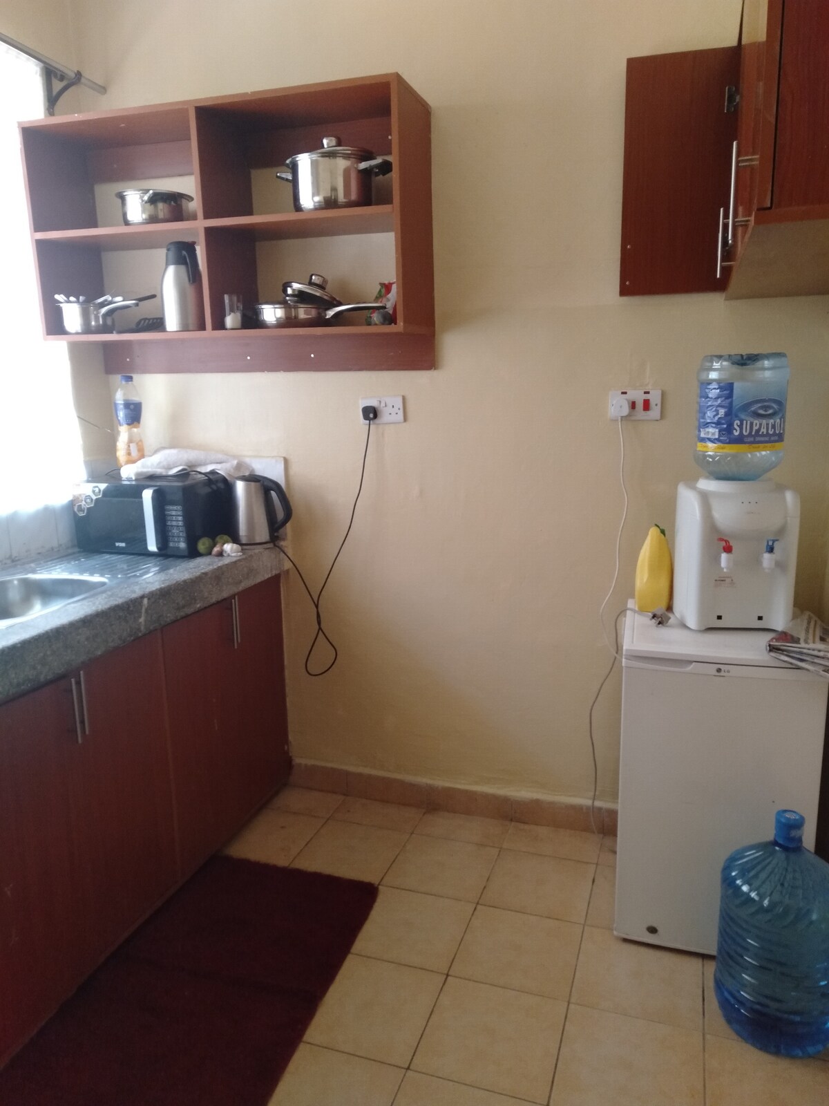 Tempat yang tenang dan sederhana untuk bersantai & beristirahat. Ada WiFi gratis, parkir yang luas, keamanan yang baik, air mengalir tersedia, kami mengalami pemadaman air selama beberapa bulan sekitar setahun yang lalu, namun, itu diselesaikan secara permanen. Tempat ini tidak jauh dari pusat kota, dapat diakses dengan berjalan kaki (50 menit berjalan kaki) sepeda motor (8 menit) yang hanya dikenakan biaya Ksh 100, dan dengan taksi biayanya Ksh 500. kami memiliki ajoint untuk bersosialisasi 500M dan dua hotel bintang 5 dengan kolam renang untuk pendinginan kurang dari 1KM. Selamat datang semua