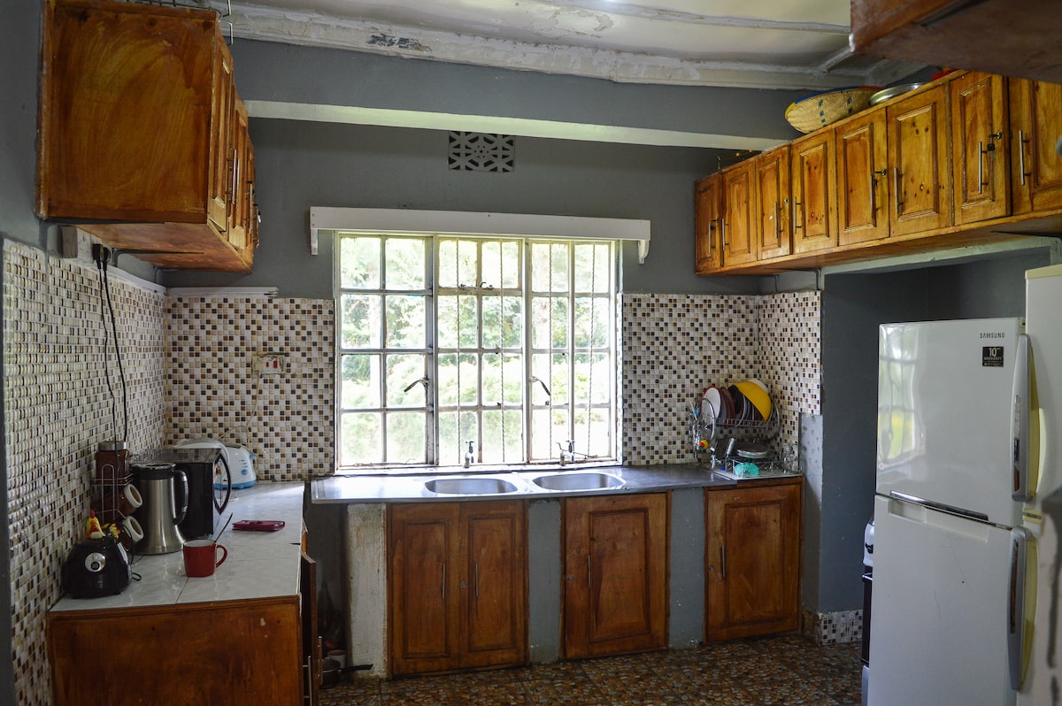 Kami's Place ~ A New Way of Living in the quiet and beautiful Mountview, Kitale . Kami's Place adalah Villa hunian modern yang dirancang dengan indah yang terletak di lahan seluas 1/2 hektar, 2,5 kilometer dari Kitale Airstrip di sepanjang jalan raya Kitale - Webuye. Fitur Utama Termasuk: Dapur yang Dilengkapi Sepenuhnya, Dilengkapi gym dengan Layar TV, Taman dengan area BBQ, Gerbang berawak 24 jam, Pengawasan CCTV, Pemanas Air Tenaga Surya, 4 Kamar Tidur en - suite, 2 tempat api, ruang belajar, WiFi , DSTV, mesin cuci, dan bar yang penuh persediaan.