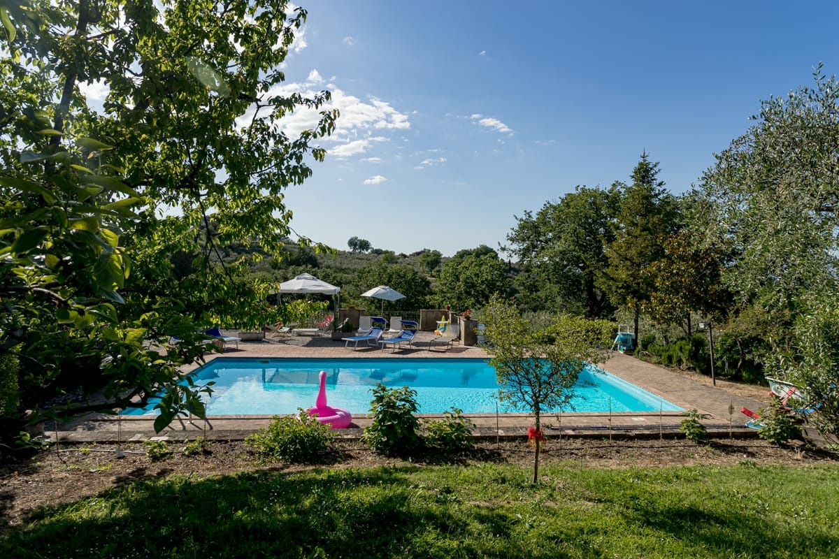 Casolare antico ristrutturato, diviso in appartamenti di varia dimensione. Dista pochi km da Montefalco e dalle principali città d'arte dell'Umbria. Dispone di ampio giardino, area giochi, barbecue, piscina attrezzata, parcheggio. L'appartamento è un bilocale, al piano primo, con camera da letto matrimoniale, bagno con doccia con box, e ingresso con angolo cottura/zona giorno e doppio divano letto. Esternamente dispone di gazebo con tavolo e sedie.