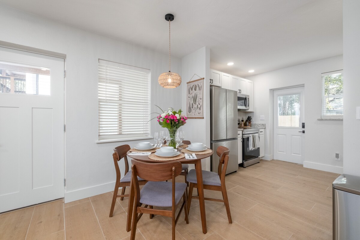 BARU DIRENOVASI - Nikmati masa inap Anda di Gainesville di studio modern abad pertengahan ini 0,5 mil dari UF dan 2 mil dari rumah sakit UF dan HCA. Tidak ada detail yang terlewatkan di rumah tamu terpisah yang dirancang dengan indah ini dengan cahaya alami yang berlimpah, finishing mewah, dan fasilitas tanpa akhir - dapur kecil, kulkas/freezer mini, smart TV, dan banyak lagi! Tempat pribadi dan tenang yang berlokasi strategis di pusat Gainesville ini sangat cocok untuk siapa saja yang berkunjung hanya untuk satu malam atau beberapa minggu.