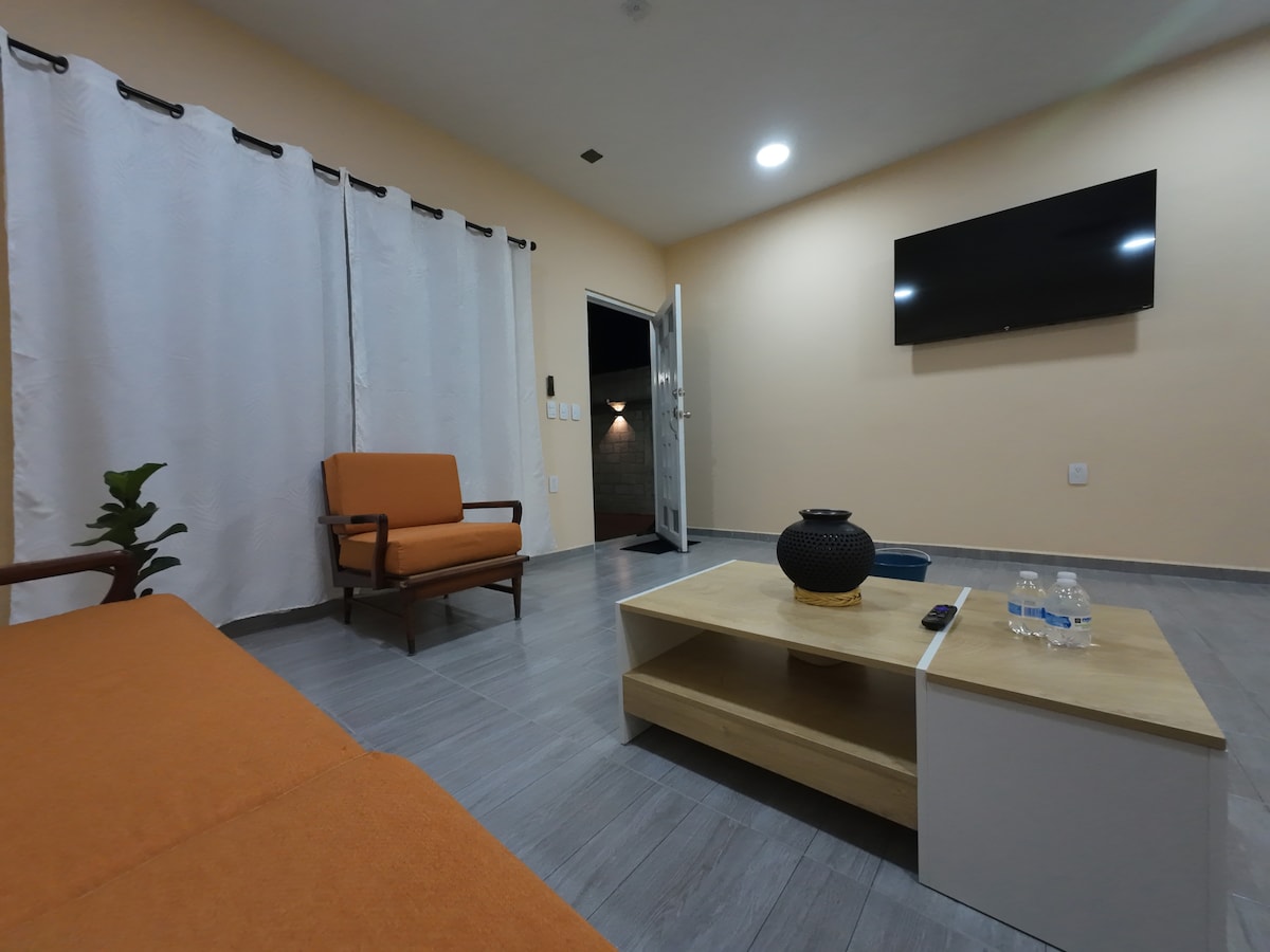 Kami memiliki 2 kamar yang dirancang dalam kenyamanan keluarganya, salah satunya dengan kamar mandi di dalam, sofa bed, dapur lengkap, garasi dengan pintu listrik, kamera pengawas di pintu masuk dan area rekreasi, pemanggang listrik, barbekyu, pergola, meja pin pong, kami berjarak 5 menit dari sams dan walmart, kami berjarak 10 menit dari pusat kota, pantai tuxpan terletak sekitar 25 hingga 30 menit dari area, ramah hewan peliharaan.