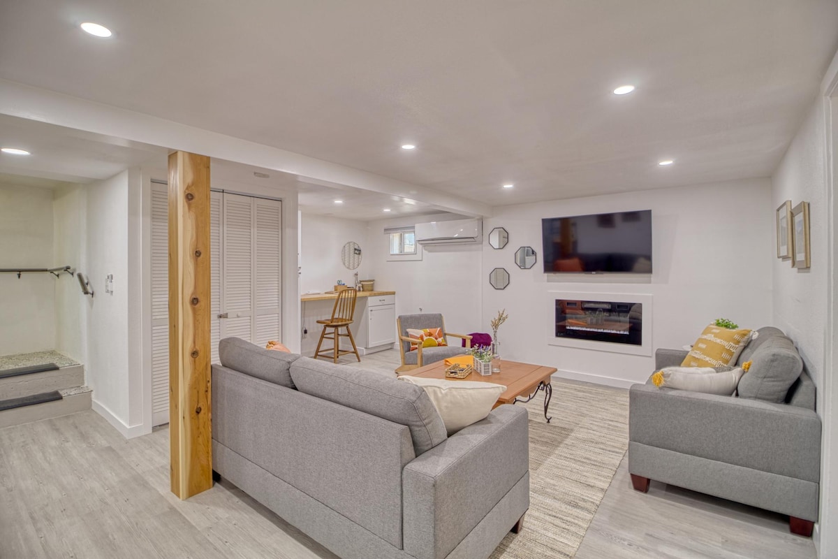 New & clean 1 bedroom studio. Convenient location for interstate travel. Private exterior entrance & parking for 1 vehicle (no trailers). Features 1 queen bed, high-quality twin size rollaway bed, full kitchen, bathroom, and washer & dryer. Located in new subdivision near canyon rim. Walking trail leading to Falls & Perrine Bridge 5 minute walk! 15+ Restaurants, Costco, Target, Grocery Store, Coffee & Shopping within 5 minute drive. AMAZING location for experiencing all Twin Falls has to offer.