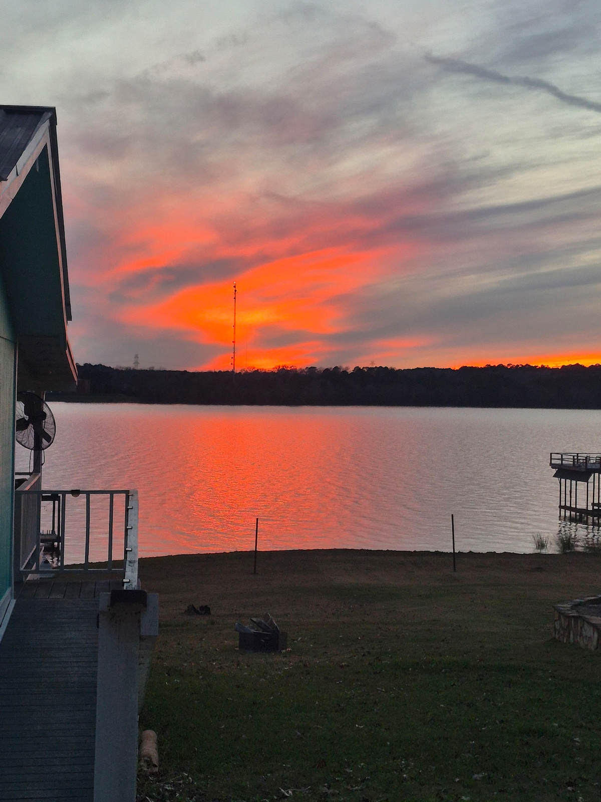 Rumah A-frame teduh dengan pemandangan matahari terbit/bulan terbit. Pondok liburan yang bagus untuk beristirahat, bersantai & memancing. Dermaga, dek terbuka, dek tertutup. Parkir tertutup, jalan masuk beraspal. Akses ke danau untuk perahu. HOTax Wood County & biaya kebersihan disertakan dalam harga per malam. Ltd. Stasiun TV. Pemutar DVD. Dekat Winnsboro yang semarak untuk berbelanja, Farmers Market Sabtu pagi, bersantap, kopi, truk makanan, Finders Keepers, Winnsboro Center for the Arts, Autumn Trails, Art & Wine Festival, Book Fair, Bloom, Rodeo.