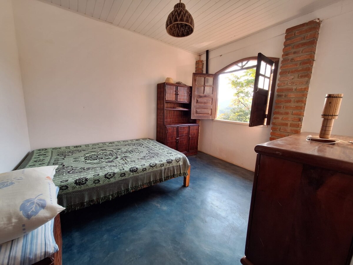 PERFEITO PARA CASAIS: Refúgio sustentável em CHALÉ de bioconstrução (taipa, adobe, garrafas coloridas e cordwood) Cozinha completa integrada à varanda, acolhedor e funcional. Chuveiro quente para relaxar após os passeios. Situado no Sítio Vila Dendê, com mais duas casas e vistas para áreas de preservação permanente (APPs) nos dois lados. 1,9 km da Vila de Serra Grande 2,5 km da Praça 3,9 km da Praia do Pé de Serra 20 km de Itacaré 39 km de Ilhéus Estacionamento gratuito 35 m² de puro charme
