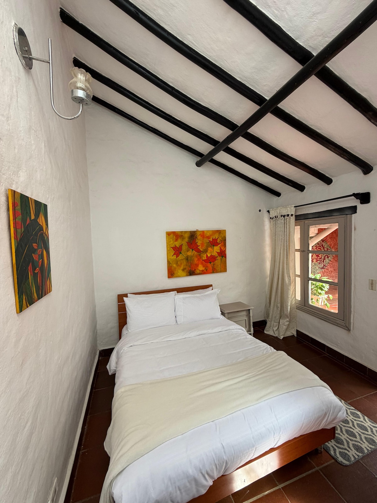 Kamar lucu ini terletak di Casa Pancha Mama dengan lokasi yang bagus hanya dua blok jauhnya dari alun - alun utama. Sangat ideal bagi pasangan untuk menghabiskan beberapa hari romantis menjelajahi Villa de Leyva yang menawan. Tempat ini luas dan nyaman dilengkapi dengan tempat tidur double dan banio penuh . Kamar ini memiliki pemandangan teras dan pegunungan rumah yang indah. Sarapan lezat disertakan dalam tarif kamar.