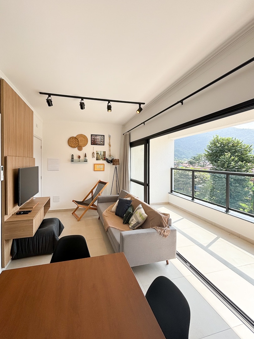 Apartemen Baru/Perabot, dengan pemandangan laut yang menakjubkan di lokasi terbaik di Ubatuba. Dekat dengan segalanya dan pada saat yang sama di tengah-tengah alam. 1 kamar tidur dengan double bed dan pemandangan laut Kamar terintegrasi dengan dapur Kolam renang di kondominium. Ber - ber - AC Wifi cepat 200mb - Garasi di tempat. Resepsionis 24/7 Letaknya di Prainha do Matarazzo dan 5 menit dari Pantai Perequê-Açu. Modern dan dengan pemandangan surga. Karena kami dekat dengan Café de La Musique, mungkin ada kebisingan pada akhir pekan.