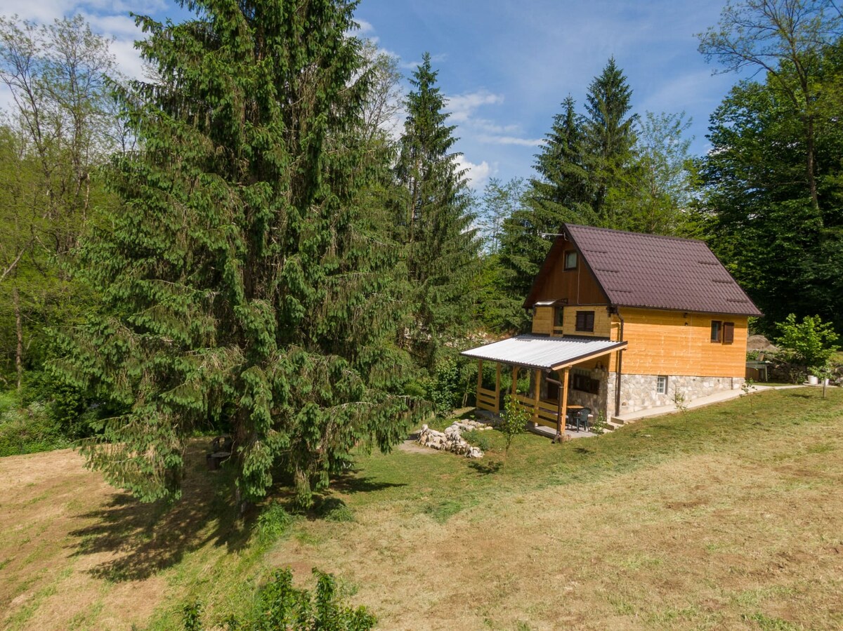 Dobrodošli u našu idiličnu vikendicu, udaljenu samo 100 metara od slikovite rijeke i popularnog kupališta. Uživajte u potpunoj privatnosti našeg imanja, opuštajući se u prostranoj pečenjari ili zaranjajući u opuštajući jacuzzi. Dodatno, gostima je na raspolaganju i naša sauna za potpuno opuštanje. Iskoristite priliku za opuštanje u prirodi uz sve pogodnosti koje naša vikendica nudi.