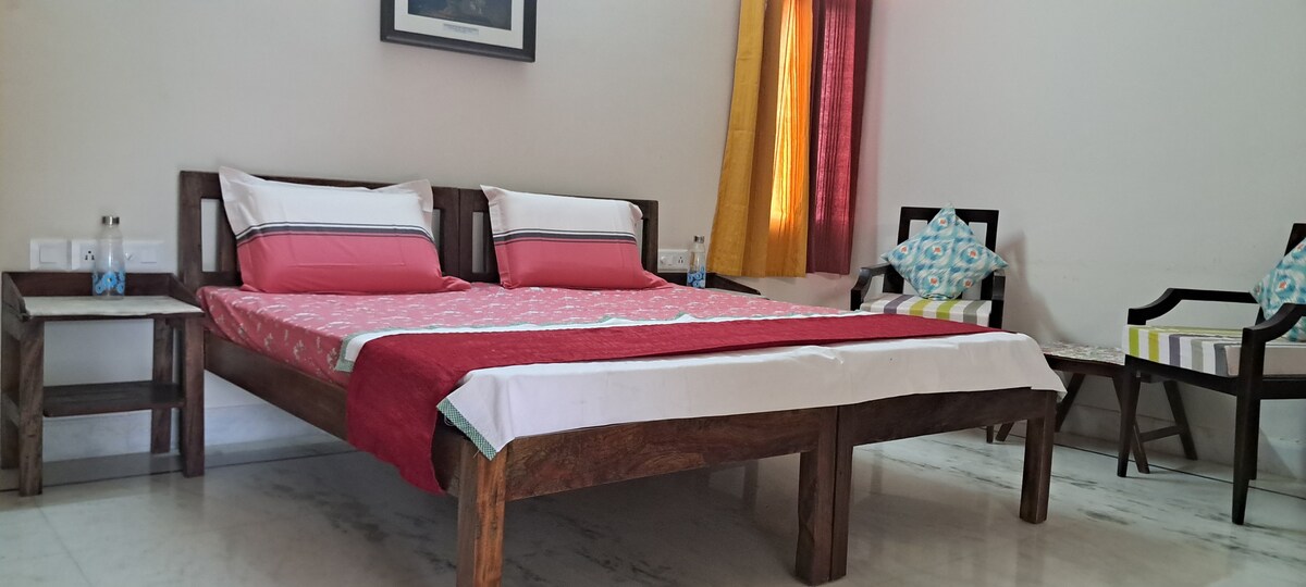 Nikmati masa inap yang damai di kamar """"NON AC"""" yang dilengkapi dengan perabot dengan tempat tidur double di dekat Danau Fatehsagar. Tempat ini memiliki 1 tempat tidur double yang nyaman, kamar mandi & toilet yang bersih. Fasilitas mencakup WiFi, kebersihan sesuai permintaan, dan tempat parkir gratis. Sempurna untuk liburan yang menenangkan dengan akses mudah ke tempat-tempat terbaik di Udaipur.