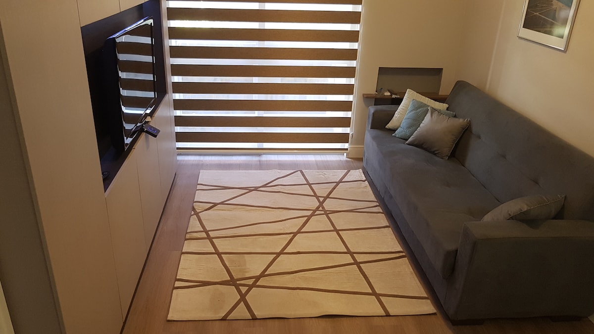 Estúdio super completo, conforto e luxo. Possui uma cama de casal e um sofá-cama para duas pessoas. Totalmente mobiliado e equipado com TUDO que uma casa precisa ter. Roupa de cama de algodão egípcio 700 fios. Televisão 70 polegadas com internet e Netflix disponíveis. Toalhas super confortáveis e esterilizadas com produtos especiais! Cafeteira com cafés gourmet disponíveis. Ar condicionado quente e frio. Uma vaga de garagem