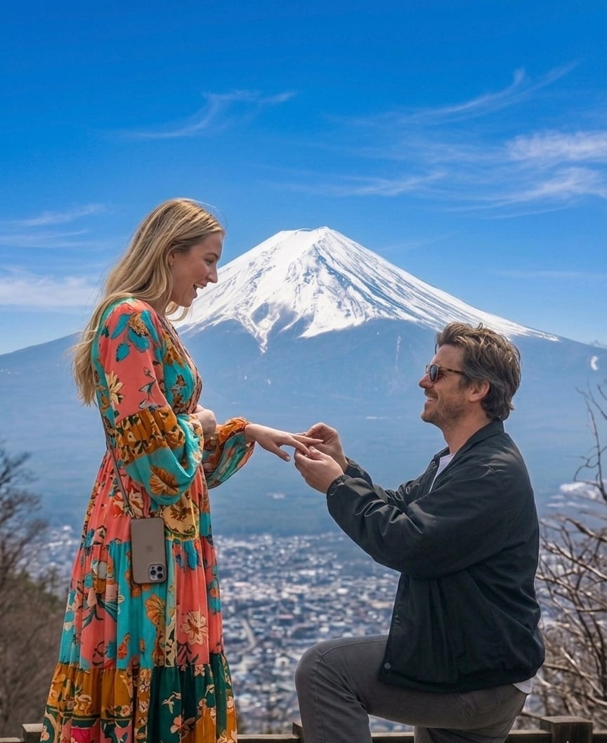 Fotografer profesional yang mengetahui pemandangan indah di seluruh Jepang akan memotret momen lamaran pernikahan Anda di Jepang dan menciptakan kenangan terbaik.