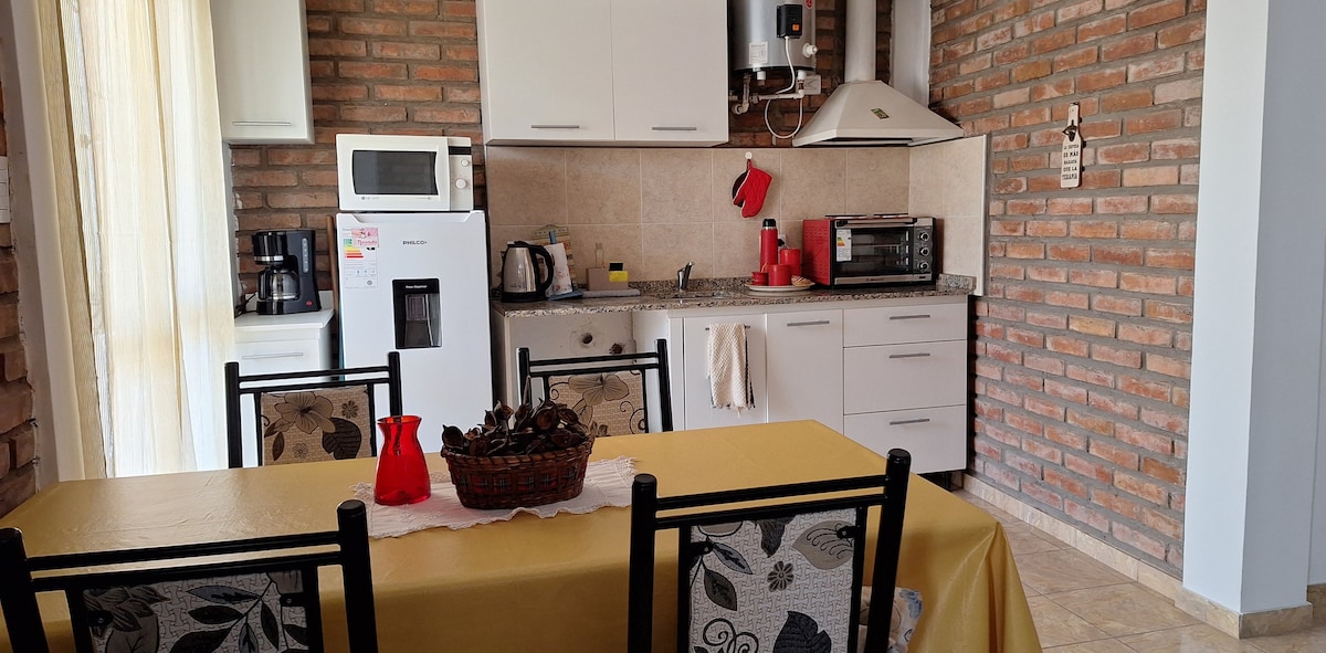 HARGA X HARI SESUAI HINGGA 2 ORANG $ 25 Apartemen berperabot lengkap Suasana satu kamar tidur dengan tempat tidur double, plakat, ruang makan, dapur listrik dengan dua anaphes, kalkun listrik, microwave dan kulkas, minibar opsional dengan biaya, peralatan makan lengkap, kamar mandi lengkap Termasuk sarapan kering (kopi, teh, panekuk sanjuaninas). AC, Smart TV, Wi - Fi, Netflix, Electric Thermotan, Pompa Air Bertekanan.