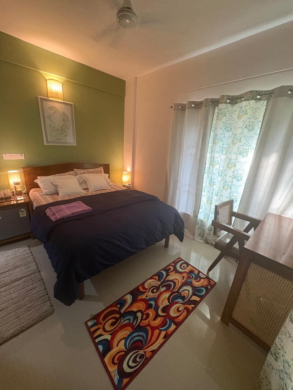 Studio 1 kamar tidur yang luas di pusat Indiranagar dengan balkon pribadi, tanaman pot, pohon mangga, dan dapur. Dirancang dengan cermat - gaya minimalis dan nyaman - dipenuhi cahaya alami dan pesona yang tenang. 1 menit berjalan kaki dari metro dan beberapa kafe terbaik di Bangalore. Perpanjangan dari cara hidup kami yang tenang — ideal untuk wisatawan solo, pasangan, dan perjalanan bisnis. Burung dan kupu-kupu sering mampir untuk menyapa. Termasuk Tempat tidur king Wi-Fi + area kerja Kamar mandi modern Dapur kecil dengan perlengkapan dasar saja