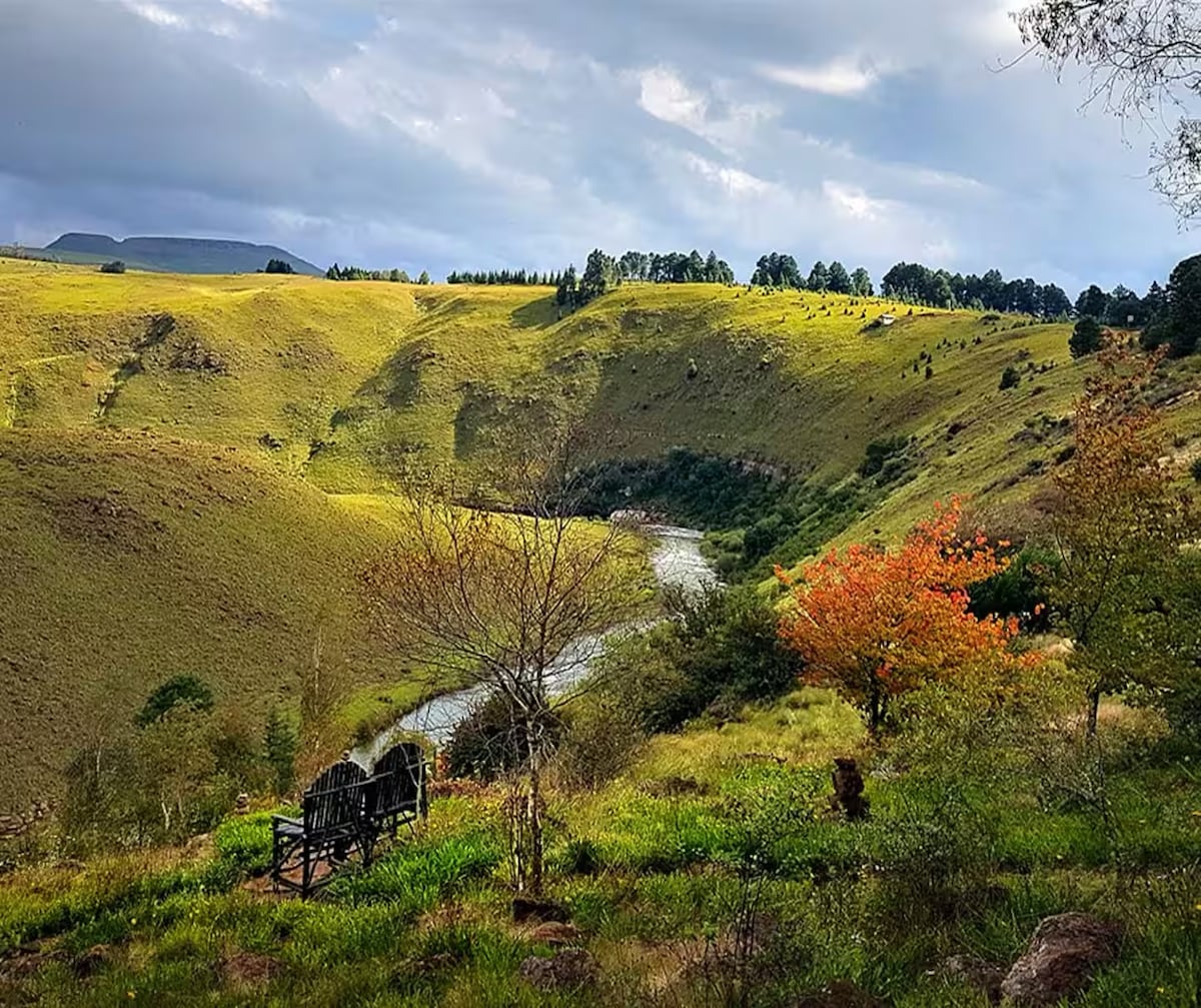 Rumah peternakan keluarga bergaya rumah di Drakensberg dengan salah satu pemandangan terindah di area pegunungan utama. Sungai Mzimkhulu dengan kolam renang mengalir melalui peternakan. Perbatasan Situs Warisan Dunia Taman Maloti - Drakensberg. Tempat ideal untuk melepaskan diri dari segala hal. Taman alam di sekitar rumah dengan pemandangan pegunungan. Memancing ikan trout yang luar biasa, tubing menyusuri sungai, menunggang kuda di dekatnya. Malam yang nyaman di perapian di lounge.