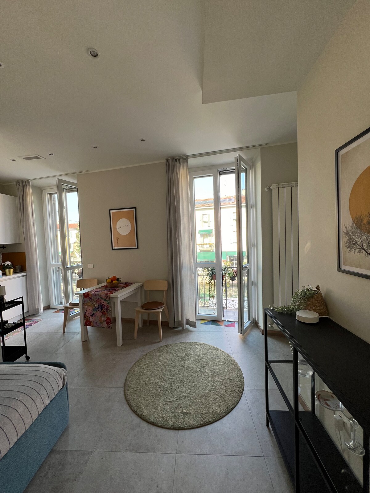 Wake up to the morning light in a historic building in Piazza Giovine Italia. High ceilings create a sense of space, while the living room, with wood paneling and a panoramic balcony, invites you to relax. The modern kitchen and dining area are perfect for intimate dinners, while the bedroom and spacious bathroom offer a serene retreat. A charming oasis where history and comfort meet, for an unforgettable stay.
