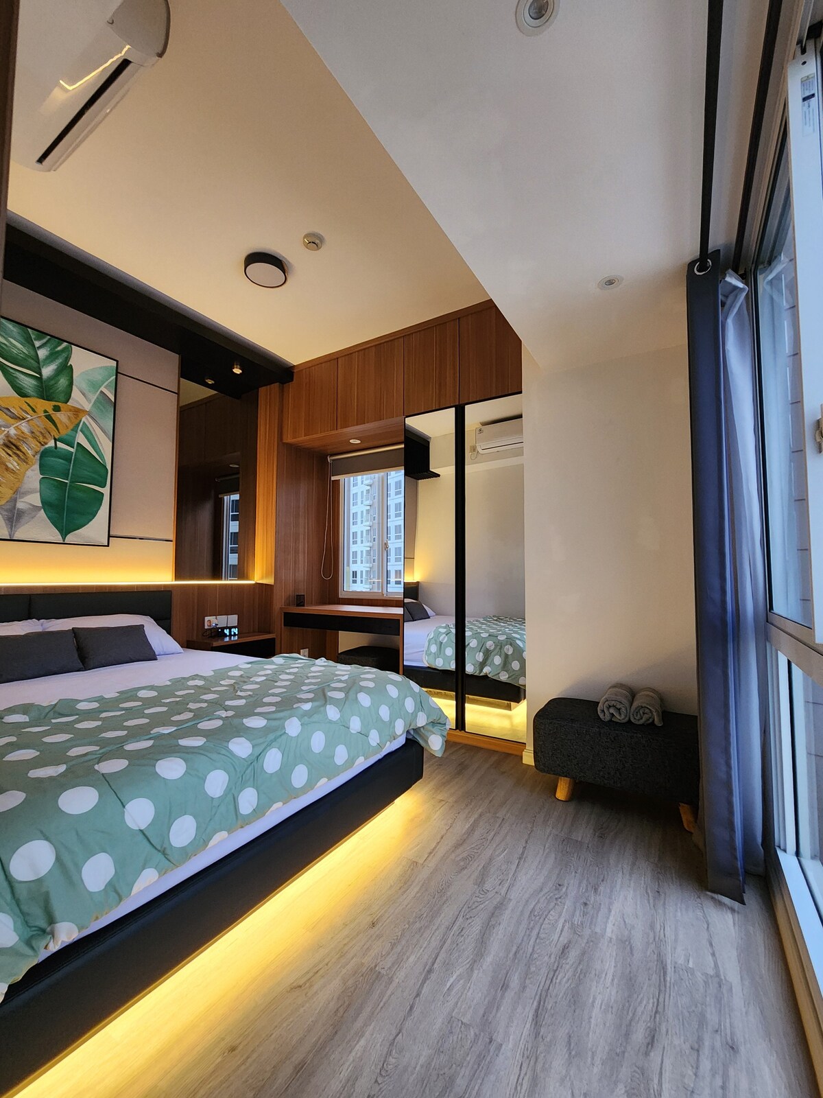 Rasakan apartemen bergaya modern kontemporer, di tengah berbagai tempat wisata dan tempat wisata di pik 2. Apartemen 2 kamar tidur yang didesain lengkap, dengan konsep yang ramping dan elegan, menawarkan pengalaman menginap yang mewah. Tempat tidur queen size + tempat tidur single yang dilengkapi dengan Smart TV, lemari pakaian terbuka, meja kerja khusus, ruang tamu/makan yang luas, internet cepat, kompor, microwave, pemanas air, dikemas dalam suasana hati yang menenangkan. Supermarket, warung makan, dan aktivitas olahraga semuanya bisa ditempuh dengan berjalan kaki.