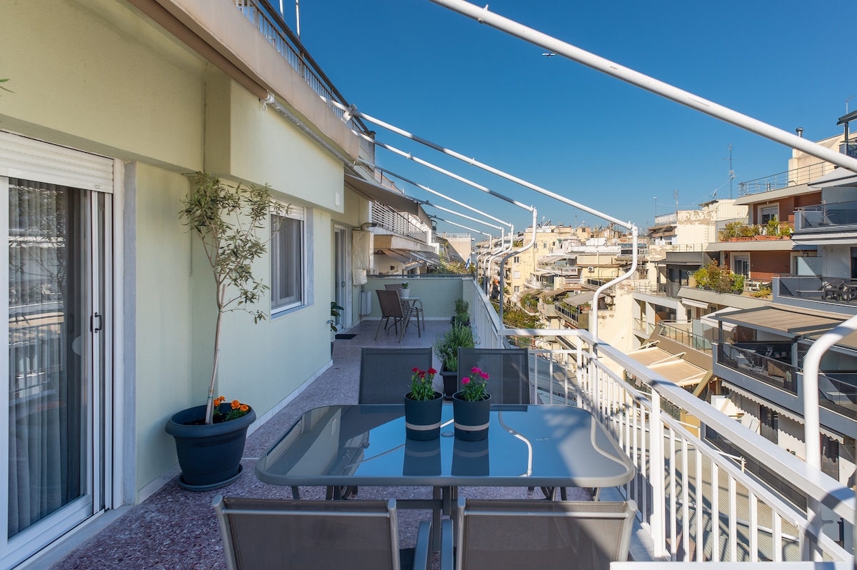 CasArte invites you to a luxurious penthouse in the heart of Thessaloniki. Enjoy stunning panoramic views from the sea to Mount Chortiatis. Our brand-new, fully equipped apartment offers ultimate comfort and relaxation. Savor breakfast on the terrace or unwind with a drink in the evening. The elegant decor and serene atmosphere provide a special sense of luxury. Explore nearby cafes and landmarks, then retreat to your stylish sanctuary for a memorable stay. We look forward to welcoming you!