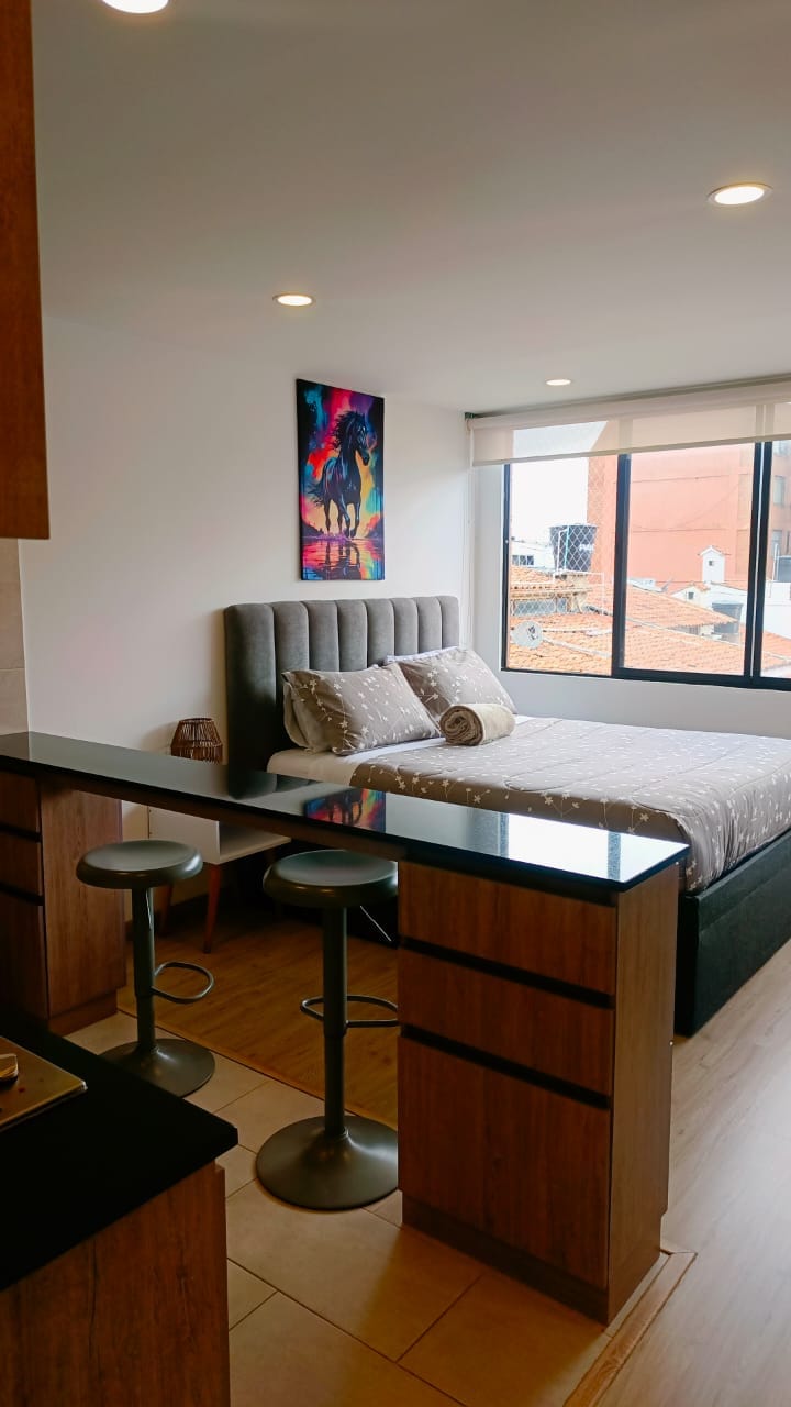 Studio apartment with all the comforts in Santa Bárbara, located in a modern and secure building in one of the most peaceful and exclusive areas in the north of Bogotá. This space offers the perfect balance between functionality and comfort, with a design suited for both short and extended stays. Ideal for those traveling for work, medical tourism, or leisure. Enjoy a cozy atmosphere and all the amenities needed for a practical and pleasant stay.