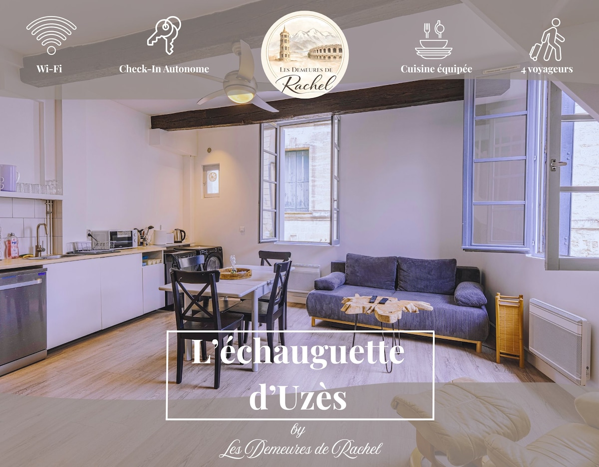 Apartemen kami berada di pusat Uzes, dekat dengan toko dan restoran. Anda akan menikmatinya karena lokasinya, suasana tempat yang meriah dan menawan, ketenangan setiap saat, volume dan kecerahan yang cukup. Sangat cocok untuk pasangan, wisatawan solo, dan keluarga (dengan bayi). Tempat ini memiliki ruang tamu besar dengan dapur terbuka dengan bar, kamar tidur besar dengan perapian batu, kamar mandi dengan pancuran, toilet di area kamar tidur, dan balkon yang menghadap ke selatan.