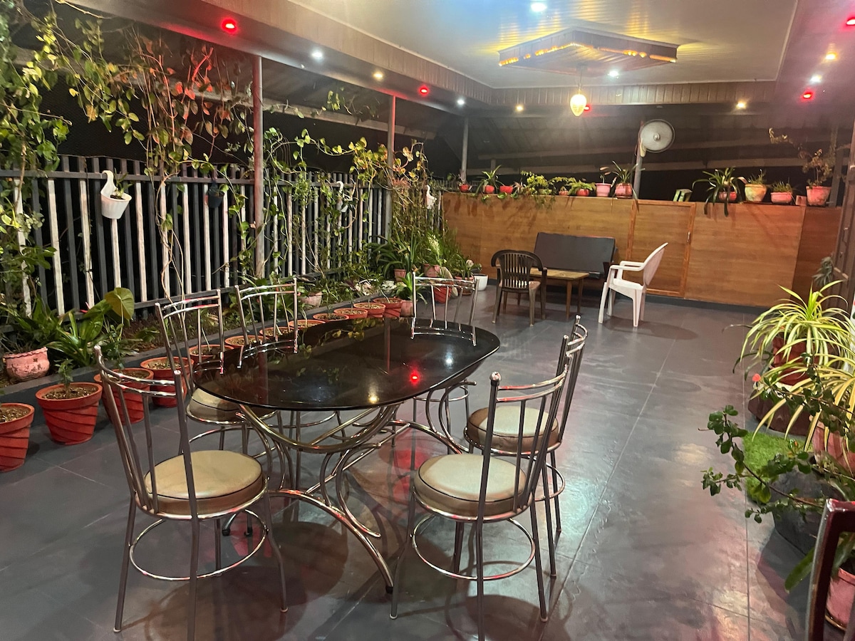 Bawa seluruh keluarga dan teman - teman ke tempat luar biasa ini dengan banyak ruang untuk bersenang - senang. Bagian ini berada di lantai dasar, dengan 2 kamar tidur(non - AC) dan ruang tamu. Dapat menampung 6 orang dewasa dengan nyaman. Kasur ekstra bisa disediakan. Taman luas dengan ayunan dan ruang luar ruangan yang luas. harap perhatikan bahwa kami tidak menyediakan handuk dan perlengkapan mandi