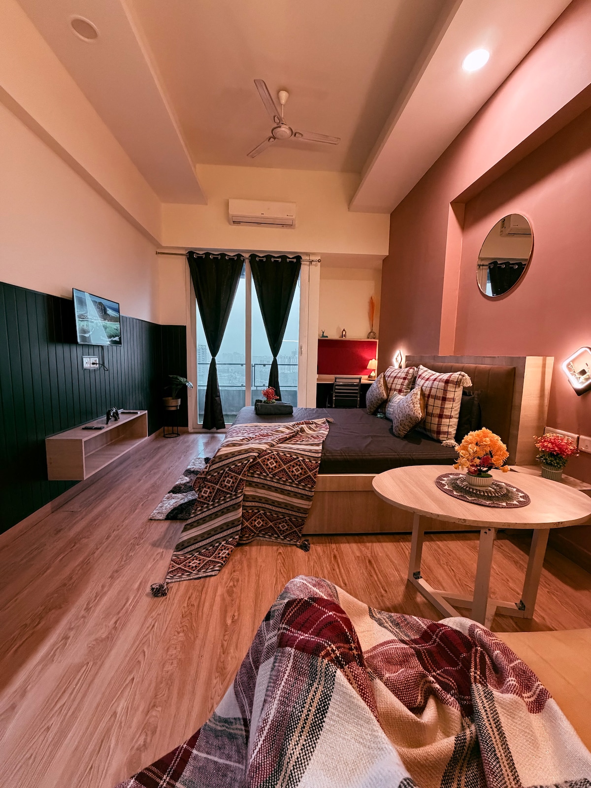 🌆 Retreat Cakrawala Kota Lantai Tinggi Mewah | Dekat Gaur City Mall Rasakan kenyamanan, privasi, dan kehidupan yang lebih baik di studio yang dirancang dengan indah ini. Ideal untuk pasangan, wisatawan solo, dan tamu bisnis, tempat ini dipilih dengan cermat untuk memberikan masa inap yang damai sambil membuat Anda tetap dekat dengan fasilitas utama, pusat bisnis, dan destinasi gaya hidup. Baik Anda berkunjung untuk bekerja, liburan singkat di kota, atau akhir pekan yang santai, apartemen ini menawarkan keseimbangan sempurna antara kenyamanan dan kemewahan.