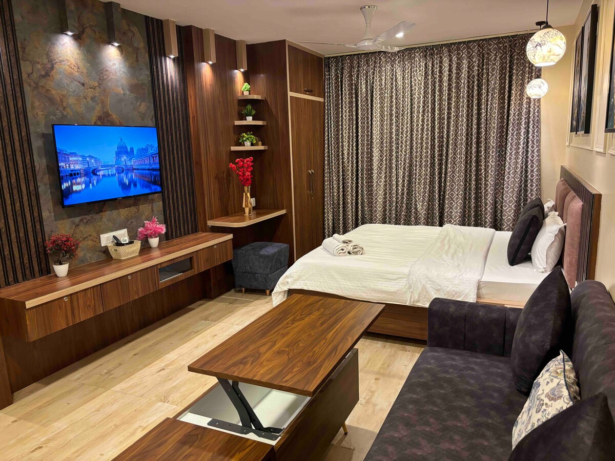 Apartemen Berada di Pusat dengan stasiun kereta api yang hanya berjarak 3 -4 menit? - Anda mendapatkannya dengan Wifi Cepat bersama dengan TV 42 inci dan OTT untuk hiburan? - Anda mendapatkannya Microwave, Kulkas, RO, Induksi untuk kebutuhan kuliner? - Anda mendapatkannya Akses ke gym & kolam renang infinity? - Anda mendapatkannya tempat tidur berukuran king besar dengan pemandangan kota? - Anda mendapatkannya! Balkon dengan pemandangan cakrawala kota? - Anda juga menyediakannya! Studio penthouse 1BR ini menawarkan kenyamanan dan fasilitas yang luar biasa. Sempurna untuk pasangan dan solo, Perlu kita bicara lebih lanjut?