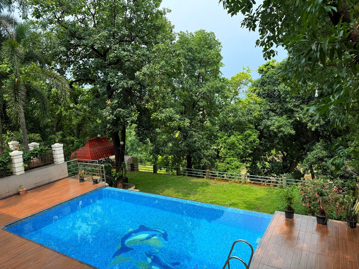 Enjoy Private Use of the Entire Property—guaranteeing absolute peace, privacy, and safety with Luggage pickup . . 🏊♀️ Private Swimming Pool with mountain views 🍲 Fresh, home-style Meals on request 🏓 Play TT, Badminton, Cricket, Carrom, Board Games 🔥 Cozy Campfire evenings under the stars 🌿 Gazebo & Sit-Out Area 📖 small library corner 🚗 Safe parking for a worry-free stay 🍛 On-site Restaurant . Property is Secure 24/7 and Well compounded .