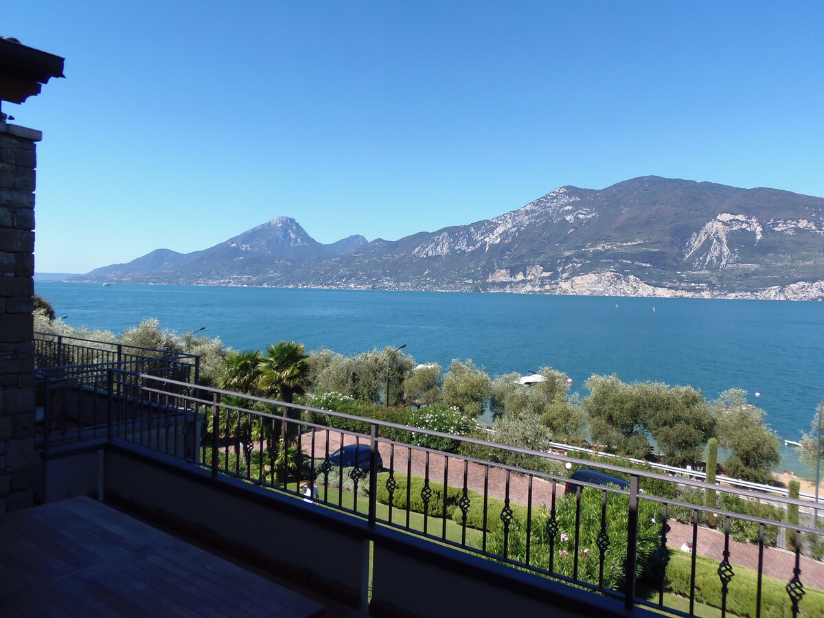 Apartemen terang dengan teras besar dan pemandangan danau yang indah, terdiri dari: - dapur/ruang tamu yang dilengkapi wastafel, oven listrik,kulkas dan freezer, microwave, microwave, ketel, ketel, peralatan, piring, TV - SAT, Wi - Fi dan tempat tidur sofa. Di teras ada meja, kursi dan kursi lounge - kamar tidur utama dengan ukuran utama, lemari besar, meja samping tempat tidur, dan jendela yang menghadap Monte Baldo. - kamar mandi dengan wastafel , toilet, bidet, pancuran, hairdryer, pemandangan jendela Monte Baldo.
