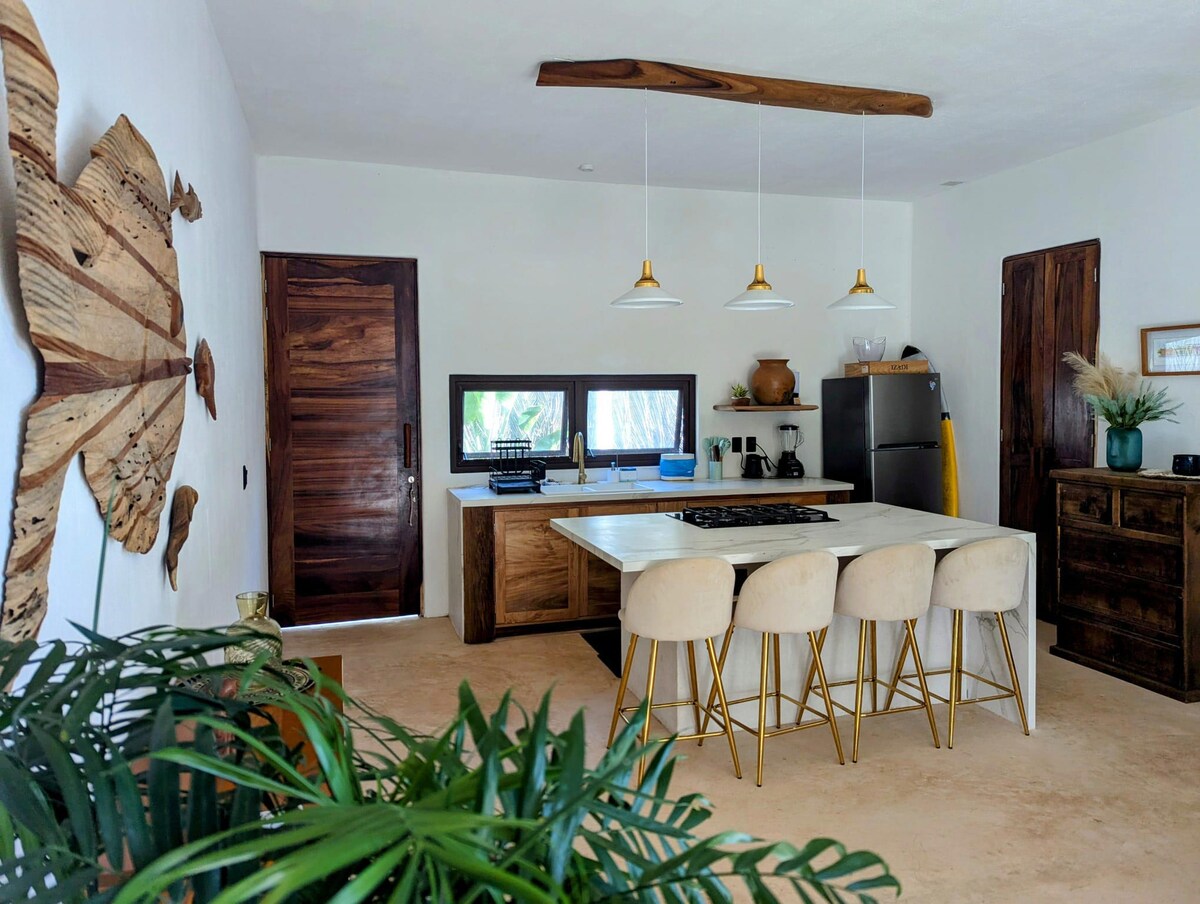 Rumah dengan kolam renang pribadi dan taman hanya 2 menit berjalan kaki ke pantai, untuk 3 orang. Suite dengan tempat tidur berukuran king dan tempat tidur sofa. Kami juga memiliki internet berkecepatan tinggi (Starlink). Villa Andra lahir dari mimpi dan penghormatan kepada seorang ibu. Impian untuk tinggal di tepi laut dan bisa berbagi oasis ini dengan Anda bahwa Anda mencari surga kedamaian. Perpaduan budaya Meksiko dan Mediterania, tempat yang nyaman di mana kami memikirkan setiap detail untuk kenyamanan Anda.