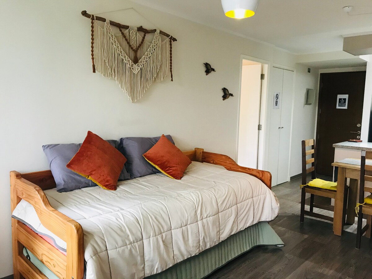 Apartemen yang indah, dengan semua fasilitas dan dekorasi yang indah, untuk masa inap yang luar biasa. Kondominium ini memiliki taman dan pepohonan asli yang dapat dikagumi dari teras apartemen. Terletak di Camino al Volcán, berjarak 15 menit berkendara dari Sky Center dan 10 menit berjalan kaki dari pusat kota Pucón, di mana Anda akan menemukan beberapa restoran kelas atas. Kami merekomendasikan Café La Berlín; makanan penutup dan kopinya wajib dicoba. Pantai tepi danau berjarak 2 menit dari pusat kota Pucón.