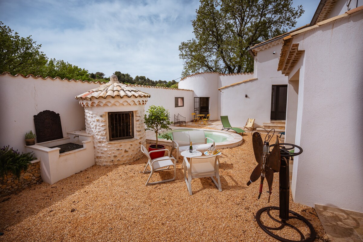 Dalam properti Provençal, pondok menawan di tempat yang istimewa, yang memungkinkan Anda menikmati ketenangan dan keindahan taman. Tempat autentik yang dibuat dengan bahan berkualitas (travertine, batu alam) yang terasnya menghadap ladang pohon zaitun dengan pemandangan menakjubkan. Beristirahatlah di tempat pertemuan! Harap perhatikan bahwa mesin cuci akan tersedia mulai musim 2026.