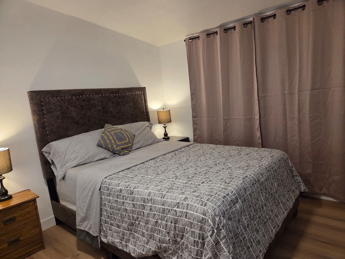 Welcome to your stylish and convenient studio apartment nestled in South El Monte This cozy space offers minimalistic living with a touch of comfort, perfect for those seeking a hassle-free lifestyle. Key Features: Kitchenette: Fully equipped with various appliances and some ingredients for simple meals. Bedroom Area: Private and inviting, with a queen-sized bed and nightstands for your convenience. Bathroom: Spacious and peaceful, packed with toiletries and an LED Mirror great for selfies