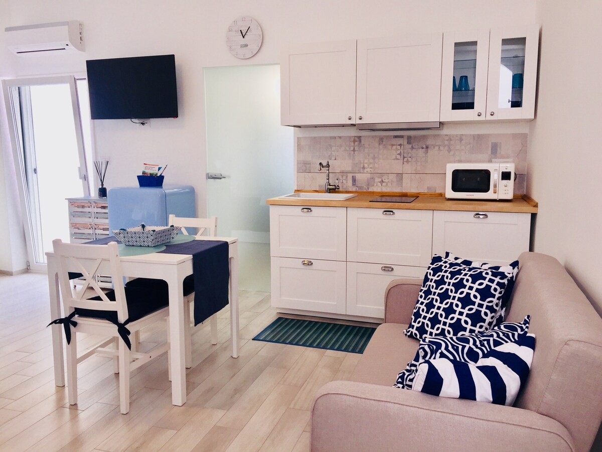 Apartemen baru hanya 150 m dari jalur pejalan kaki Peschici, dengan luas 48 meter persegi dan balkon yang indah dengan pemandangan laut dan sekilas pemandangan teluk. Terang dan dilengkapi dengan perabot yang indah dengan setiap kenyamanan, AC, jaringan wifi, TV 50", dapur yang dilengkapi dengan kulkas, freezer, oven, mesin espresso, ketel listrik dan pemanggang roti, area makan. Tersedia bak mandi air panas (berbayar) Ideal untuk liburan pantai yang menenangkan dan romantis.