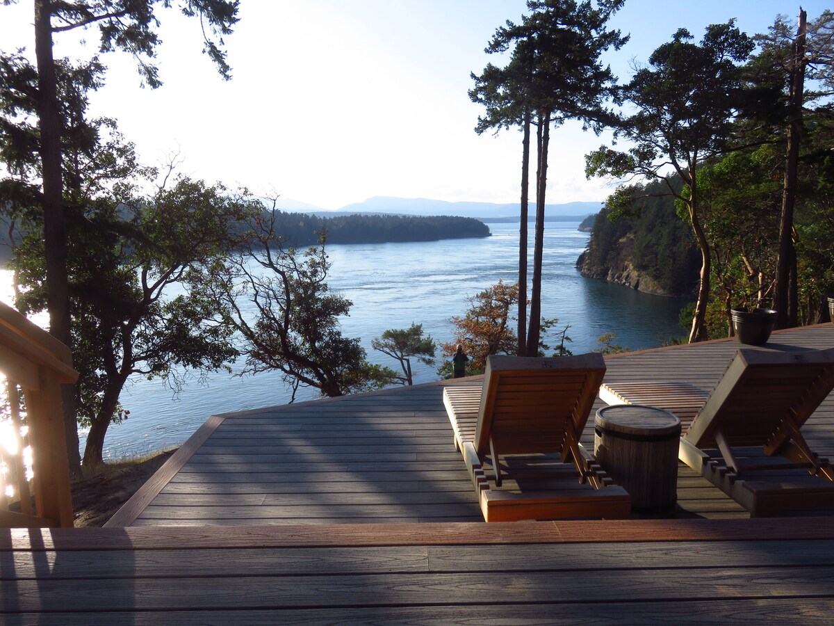 Terletak di Active Pass, jalur laut spektakuler yang memisahkan pulau Galiano dan Mayne, InTheBluff menawarkan salah satu pemandangan paling menakjubkan di Kepulauan Teluk Selatan. Dengan 2 kamar tidur, yang masing-masing dilengkapi tempat tidur queen, chalet kayu ini bisa menampung hingga 4 orang. InTheBluff memiliki bak mandi air panas infinity-edge yang luar biasa dengan pemandangan Active Pass.