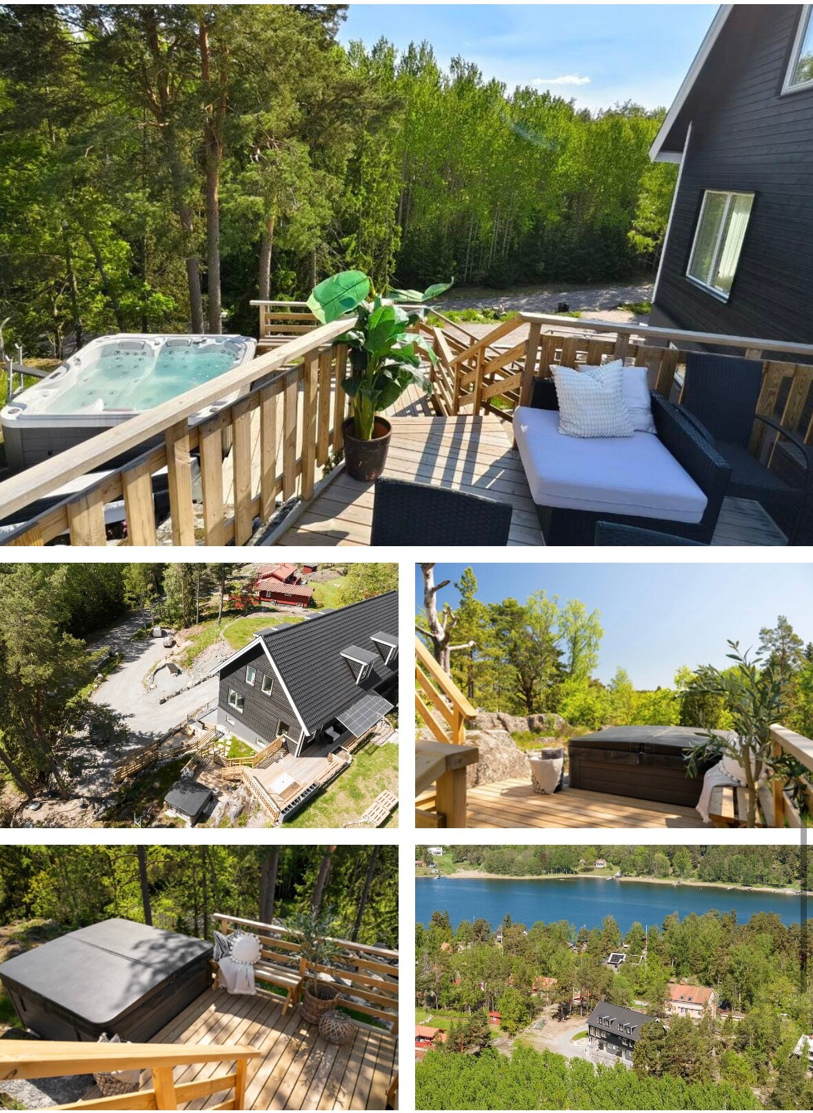 Rumah kami yang menakjubkan selesai pada tahun 2013, dibangun di atas tebing yang menghadap ke saluran air yang mengarah ke Stockholm. Aspek selatan dengan pemandangan membentang dari timur ke barat. Pantai pribadi, dermaga, dan sauna kayu. Rumah ini memiliki satu kamar tidur utama, 2 kamar tidur ditambah kabin kecil (rumah tamu, kamar tidur no 4, hanya tersedia di musim panas). Dek memiliki ruang duduk, bak mandi air panas, dapur luar ruangan dan perapian terbuka/BBQ. Kami berlokasi 30 menit dari pusat kota Stockholm, 10 menit dari pusat perbelanjaan.