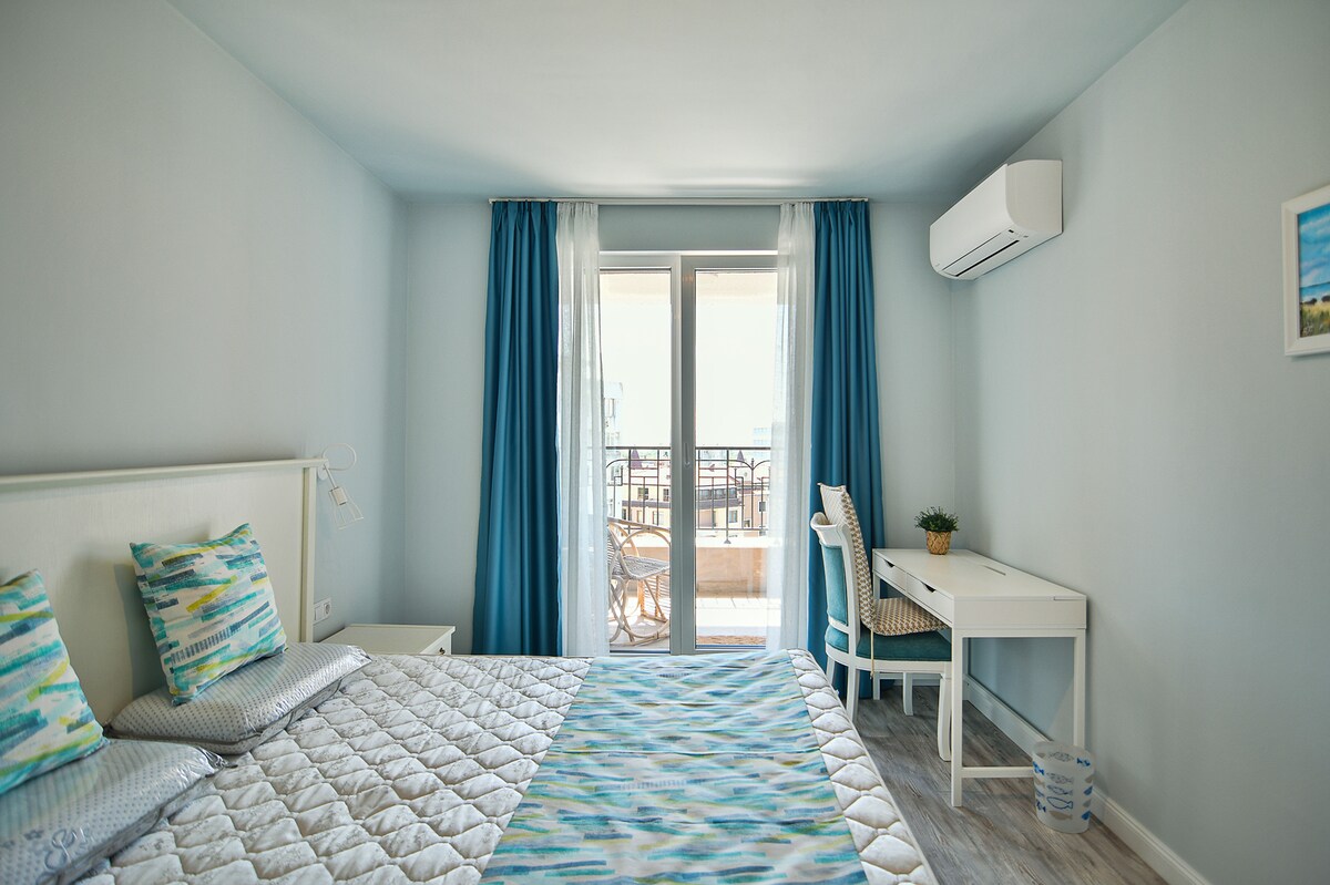Apartemen pemandangan laut yang luas di Varna South Bay
