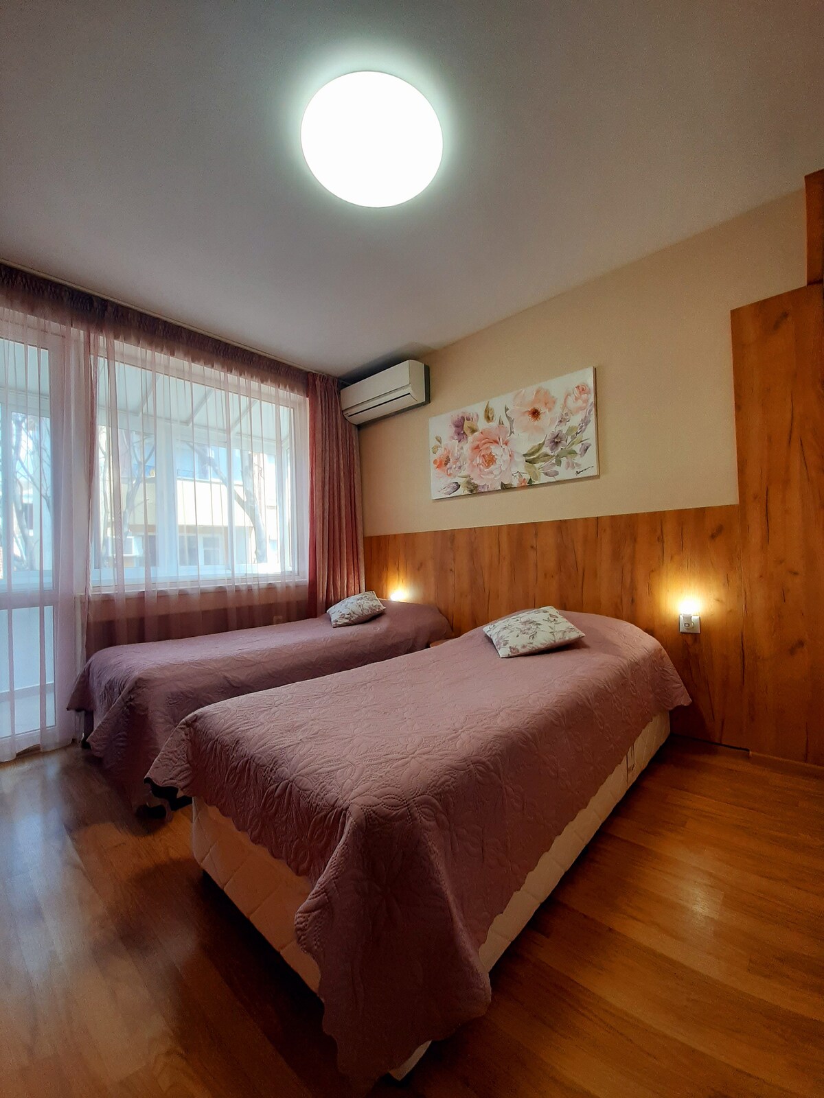 Nikmati masa inap Anda ke kompleks bangunan megah, yang terletak tepat di pantai selatan Kota Varna yang menawarkan pemandangan laut yang luas dalam pengaturan yang benar - benar unik dan pribadi. Sebagai tamu, Anda dapat menggunakan kolam renang luar ruangan dan sementara itu hanya beberapa langkah dari pantai Asparuhovo putih berpasir sepanjang kilometer.