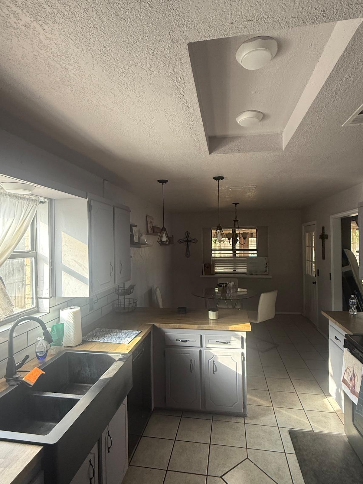 Come and enjoy this gorgeous home!🏡 Great for 🚗TRAVELING groups, or 🧑🧑🧒🧒 LARGE families! Peaceful neighborhood, with ☕️COFFEE SHOP, ⛽️GAS STATION, and 🍗DINNING across the street! Easy access to I-27, and a short drive to I-40. 4 BEDROOMS, and 3 full BATHROOMS! Beautiful primary bedroom, restroom , and walk-in close. Great for getting ready! 🏋️♀️There is a home gym with cable machine, squat rack, bench, plates and dumbbells! Great outdoor area for hanging out and grilling.
