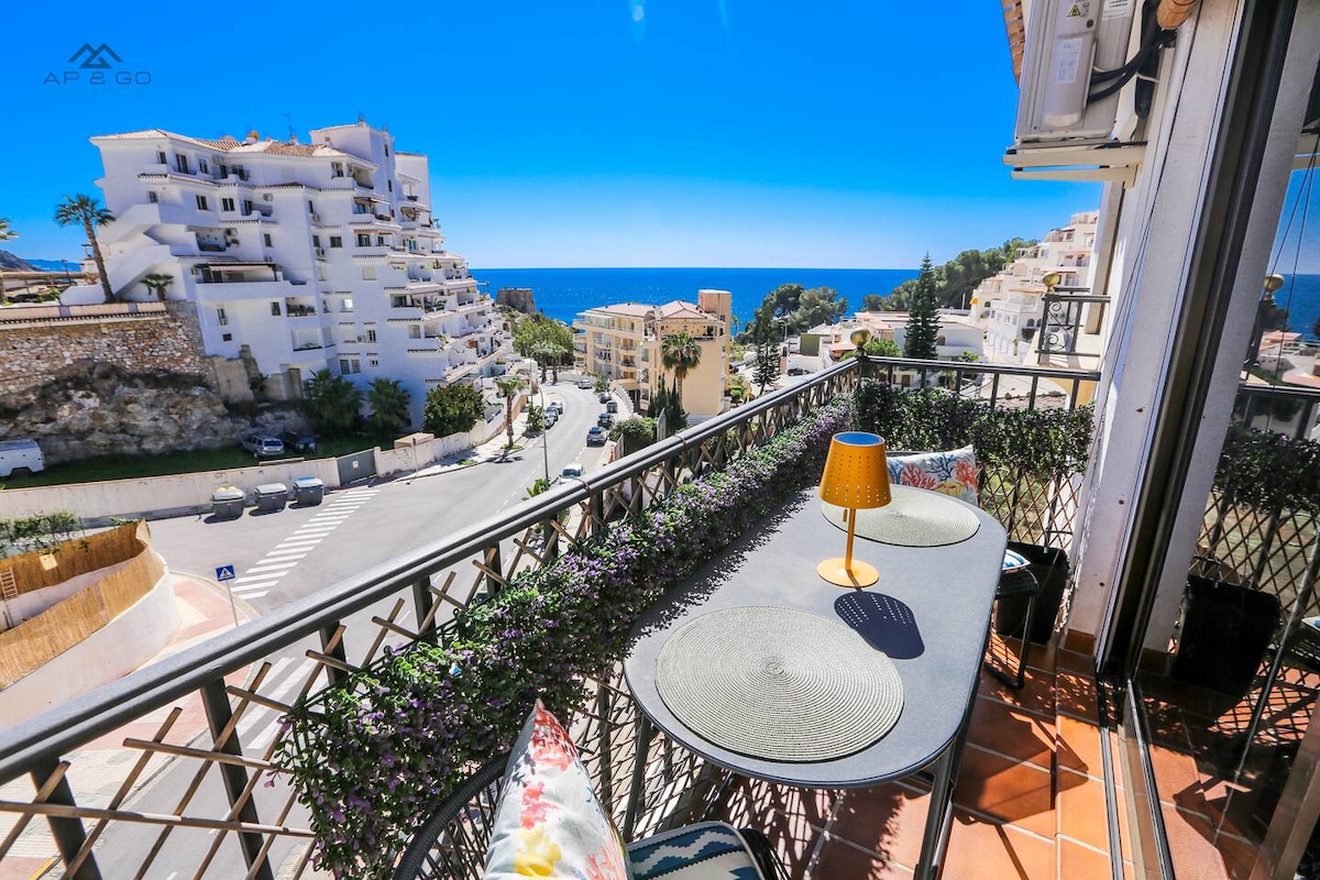 Apartemen tepi pantai yang indah dengan pemandangan Laut Mediterania yang fantastis, kolam renang komunitas di musim panas, parkir pribadi, wifi serat cepat, TV layar datar 50", AC, Almuñécar, Playa de Velilla, Costa Tropical, bangunan Intiyan. Semua layanan bisa ditempuh dengan berjalan kaki (supermarket, apotek, tukang daging, restoran, toko buah - buahan). Teras yang luas, ruang makan, dan dapur memiliki pemandangan pantai dan laut yang indah.