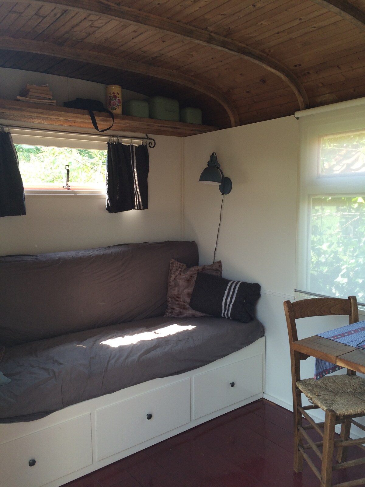 Berlibur romantis di tepi perairan dengan pemandangan perahu yang melintas di tempat yang indah. Anda bisa berenang di sini! Dilengkapi dengan semua kemudahan seperti: dapur luar ruangan yang luas dengan wastafel, oven, kulkas, dan kompor 2 api. Kamar mandi pribadi, minibar lengkap, kopi dan teh, 1 tempat tidur 2 orang yang nyaman (180 lebar x 240 panjang) dan taman pribadi Anda! Kamar mandi dilengkapi dengan semua kemudahan, termasuk pemanas lantai, pancuran, wastafel, dan toilet. Clamping di Belanda!