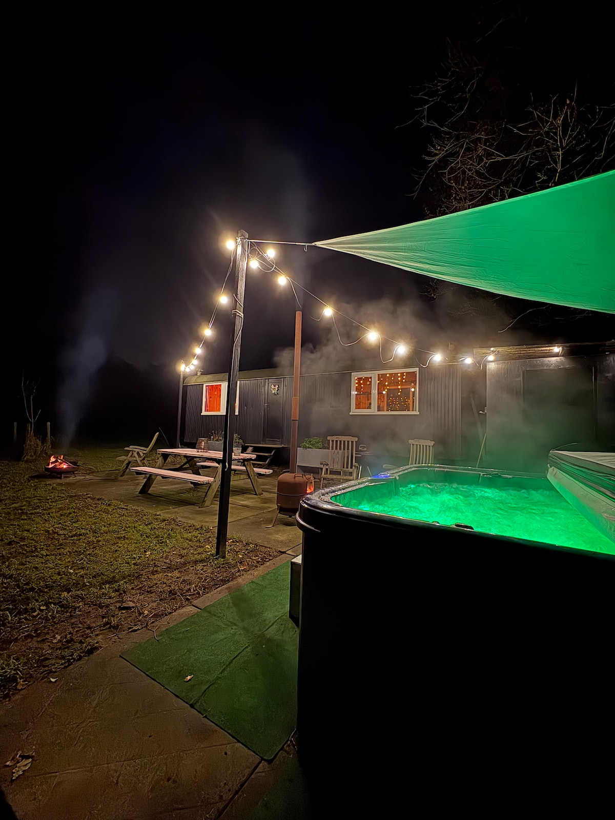 Pondok kebun romantis dengan bak mandi air panas