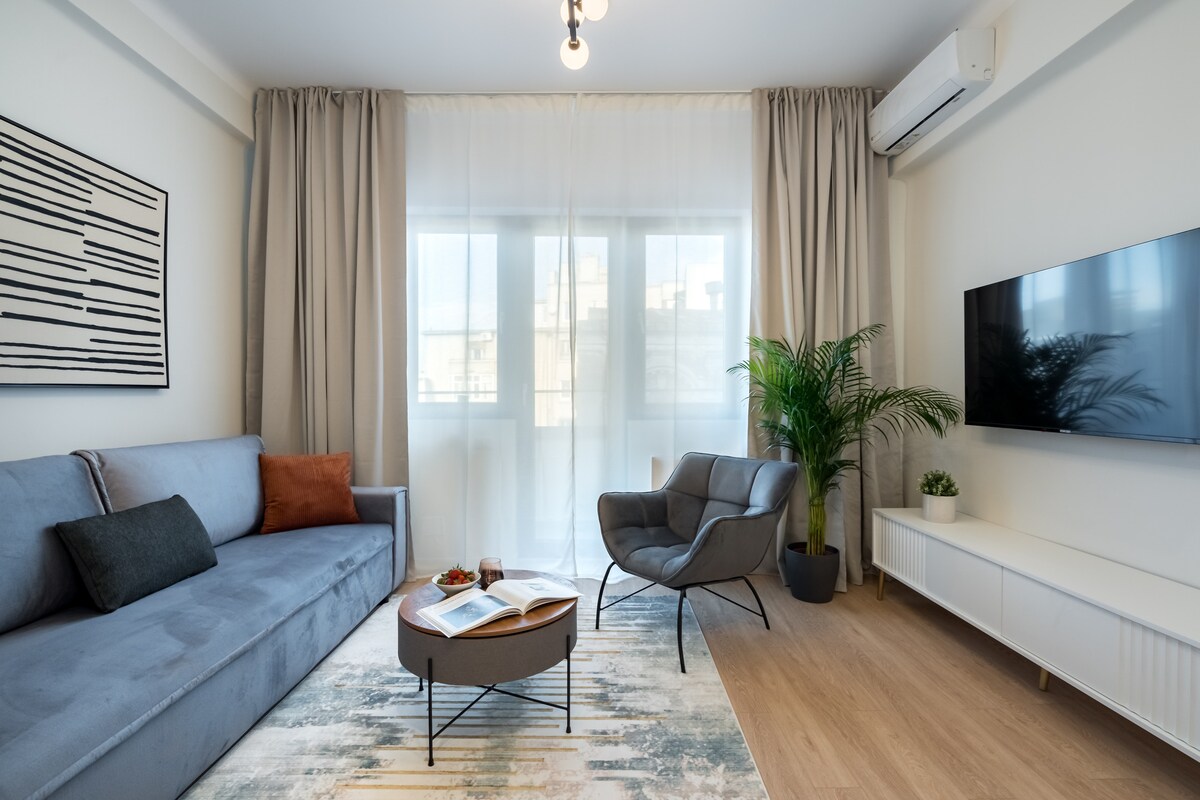Apartemen dua kamar tidur yang indah di pusat kota Bucharest. Hanya berjalan kaki sebentar dari University Sq (3 menit) dan dari area Kota Tua (7 menit). Area ruang tamu terbuka dan dilengkapi sofa yang nyaman, area makan yang indah, dan dua kursi berlengan. Dapur berfasilitas lengkap dengan peralatan berkualitas. Dua kamar tidur dengan tempat tidur yang nyaman, banyak penyimpanan, dan ruang kerja khusus. Terletak di sebuah bangunan yang sangat kokoh dan tenang dari tahun 80 - an, menambah kenyamanan Anda dan tidur malam yang nyenyak. Pesan sekarang dan selamat menginap!