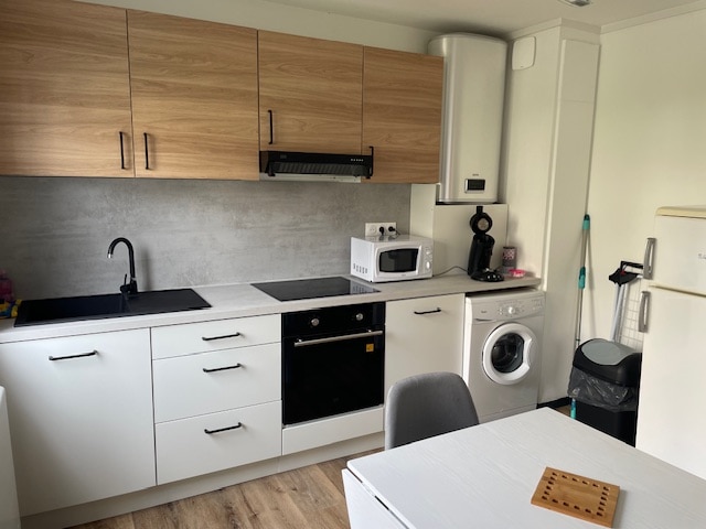 Selamat datang di apartemen kami yang direnovasi dengan selera tinggi, yang berlokasi di daerah yang tenang dan sangat nyaman. Dioptimalkan untuk kenyamanan Anda, tempat ini memiliki segalanya yang Anda butuhkan 1 tempat tidur queen 1 tempat tidur berkualitas Renovasi baru-baru ini, dekorasi yang rapi dan modern Dapur lengkap (kompor induksi, microwave, kulkas, pembuat kopi, ketel, pemanggang roti, piring, dll.) Wifi cepat dan TV layar datar Disediakan handuk dan seprai.