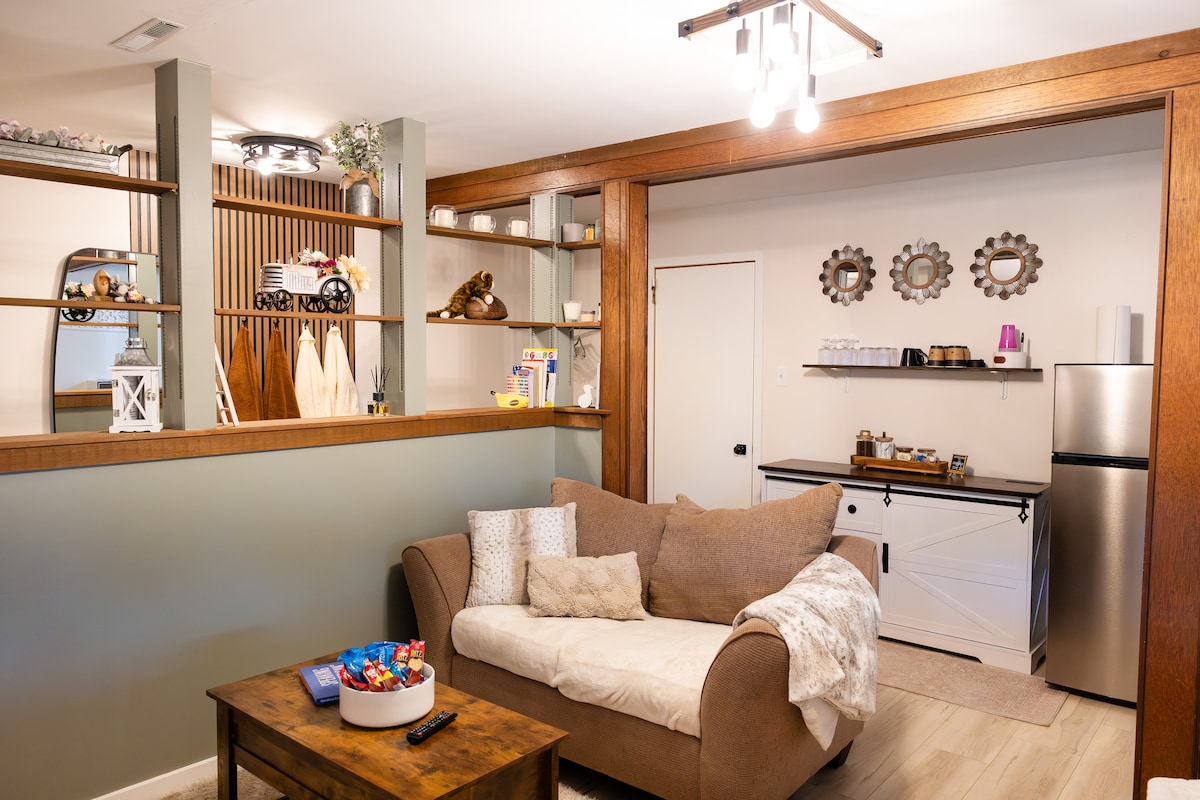 Nikmati pemandangan Manhattan dari suite basement dua tempat tidur/1 kamar mandi kami yang tenang dengan pintu masuk pribadi, termostat Anda sendiri, Wi - Fi gratis, kamar mandi lengkap dengan bak mandi/pancuran dan kamar dengan kulkas mini, microwave, dan TV . Parkir di lokasi dengan tangga batu yang mengarah ke pintu masuk pribadi di halaman belakang yang menampilkan perapian untuk bersantai di bawah bintang - bintang. Akses mudah ke kampus KSU, Stadion, Aggieville, dan Ft. Riley. Tamu mengakses tempat terpisah dengan check - in mandiri. Harap perhatikan bahwa pemiliknya tinggal di lantai atas.