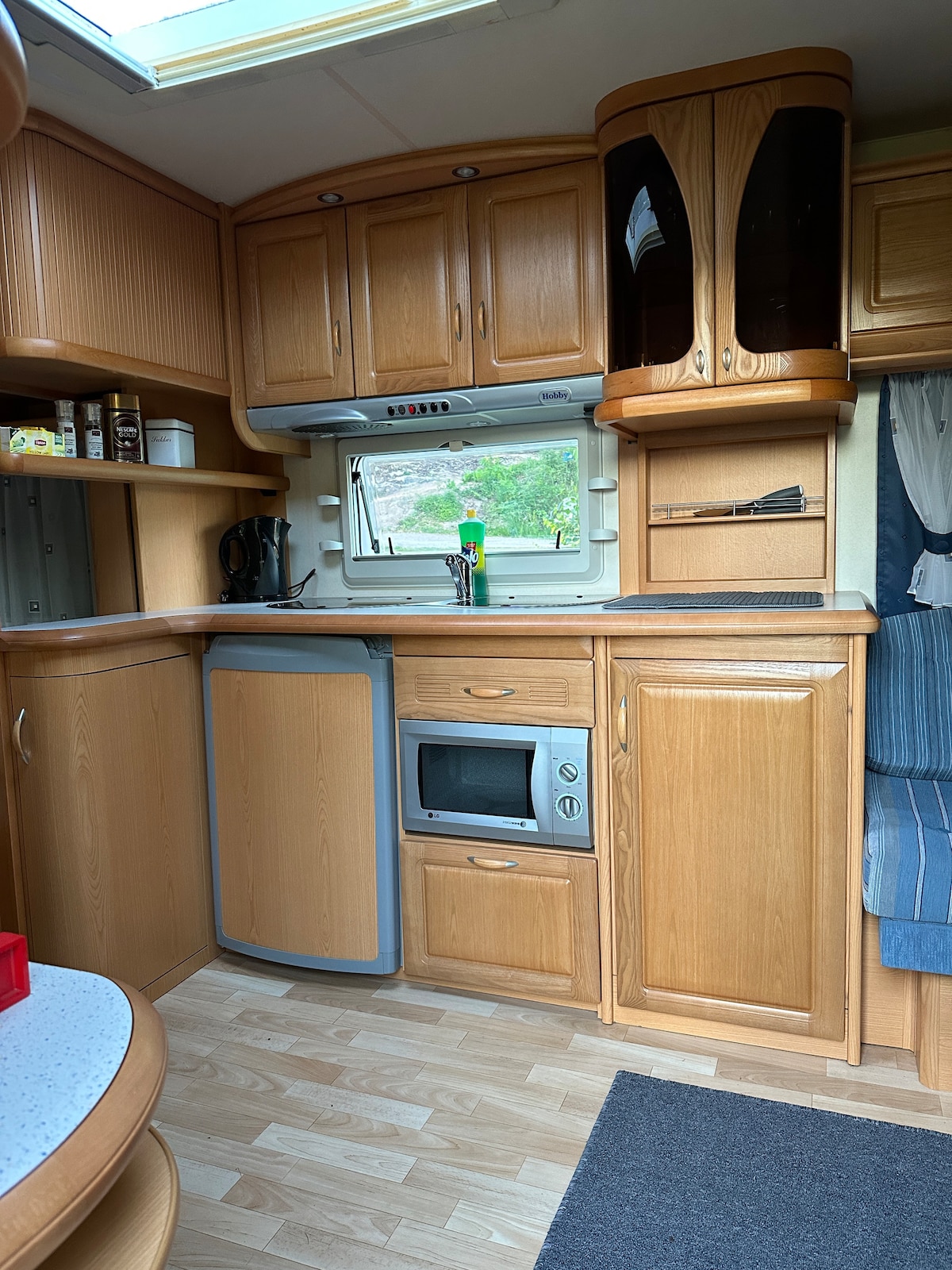 Karavan dengan 5 tempat tidur di halaman rumah keluarga tunggal. Parkir di jalan masuk. Satu tempat tidur double, satu tempat tidur single, dan dua tempat tidur susun. Sangat cocok untuk 2 orang dewasa dan hingga 3 anak-anak. Hanya tempat tidur double yang memiliki panjang penuh. Tempat tidur susun hanya bisa digunakan oleh anak - anak. Dapur berperabot sederhana dengan kompor gas, kulkas kecil, dan penggoreng udara. Toilet kecil biasa. Tidak ada kemungkinan untuk mandi. Tidak ada kemewahan di sini, tetapi tempat menginap yang sederhana dan terjangkau selama satu atau dua malam. Sangat cocok untuk masa inap singkat.