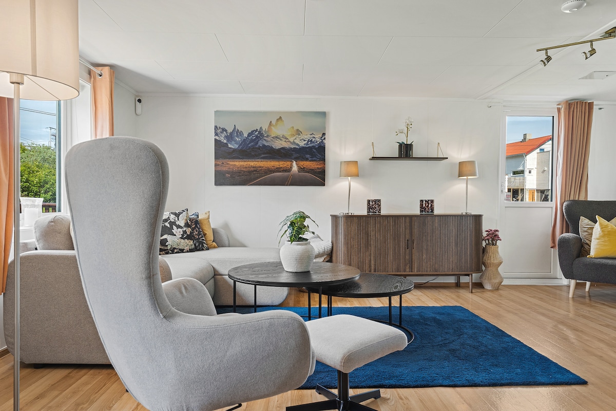 - Rumah ramah pasangan, pelajar, dan keluarga (90m2/950 ft2). - Lingkungan tinggal yang tenang dengan 5 rumah. Tempat kami tinggal sepanjang tahun, berbagi fyord dengan keluarga lain dan tempat berkemah. - Kemungkinan untuk menyewa mobil listrik Toyota AWD melalui GetaroundApp. Terletak di jalan pantai Valbergsveien: - 20 menit berkendara ke Leknes dan 1h20m ke Reine (Barat) - 1 jam ke Svolvær (Timur) Tujuan kami adalah membantu Anda memaksimalkan kunjungan Anda ke Lofoten. Istirahat dan mulailah hari dengan secangkir kopi yang lezat;)